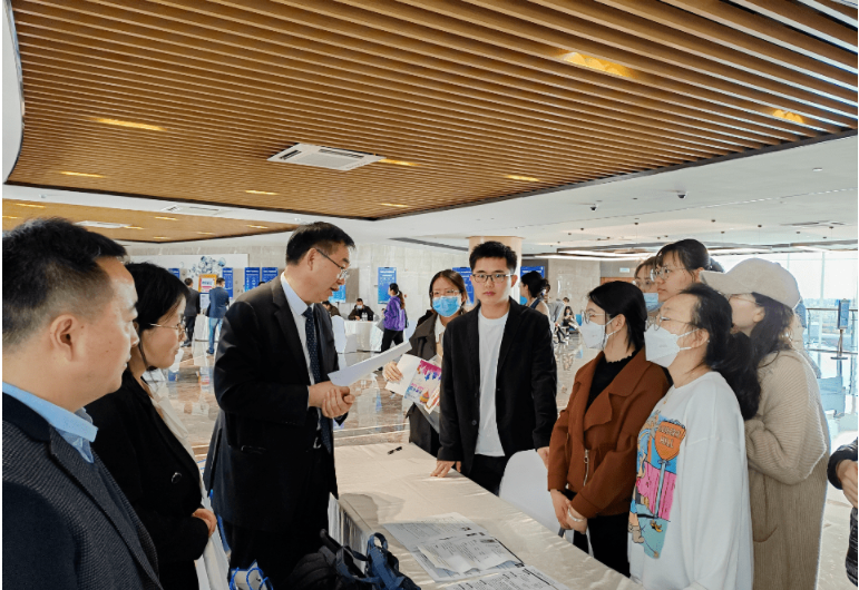 4月10日,首届“中国山东海洋高端人才交流暨项目洽谈”活动在青岛蓝谷举行。省、市有关领导,高校、科研院所代表、专家,山东海洋人才高质量发展联盟代表和涉海高层次人才等参与本次活动,我院43名学生参加招聘会。