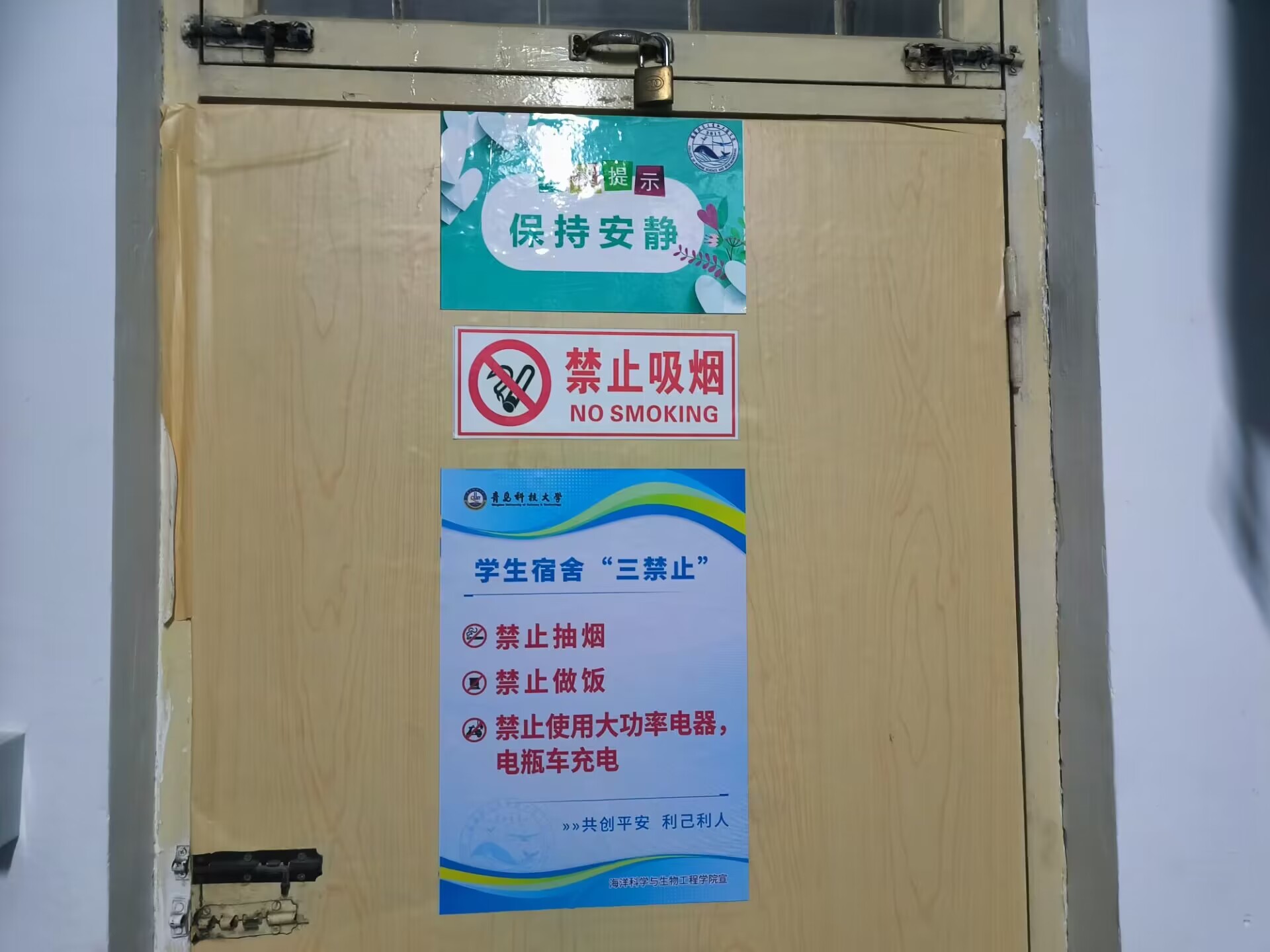 创建宿舍文明标语,使宿舍工作抓在日常。我院设计“禁止吸烟”、“保持安静”、“文明宿舍”等宿舍文明标语,并将相关文明标语张贴在公寓、宿舍突出位置,使文明宿舍创建入脑入心,保证文明宿舍创建的质量和效果。