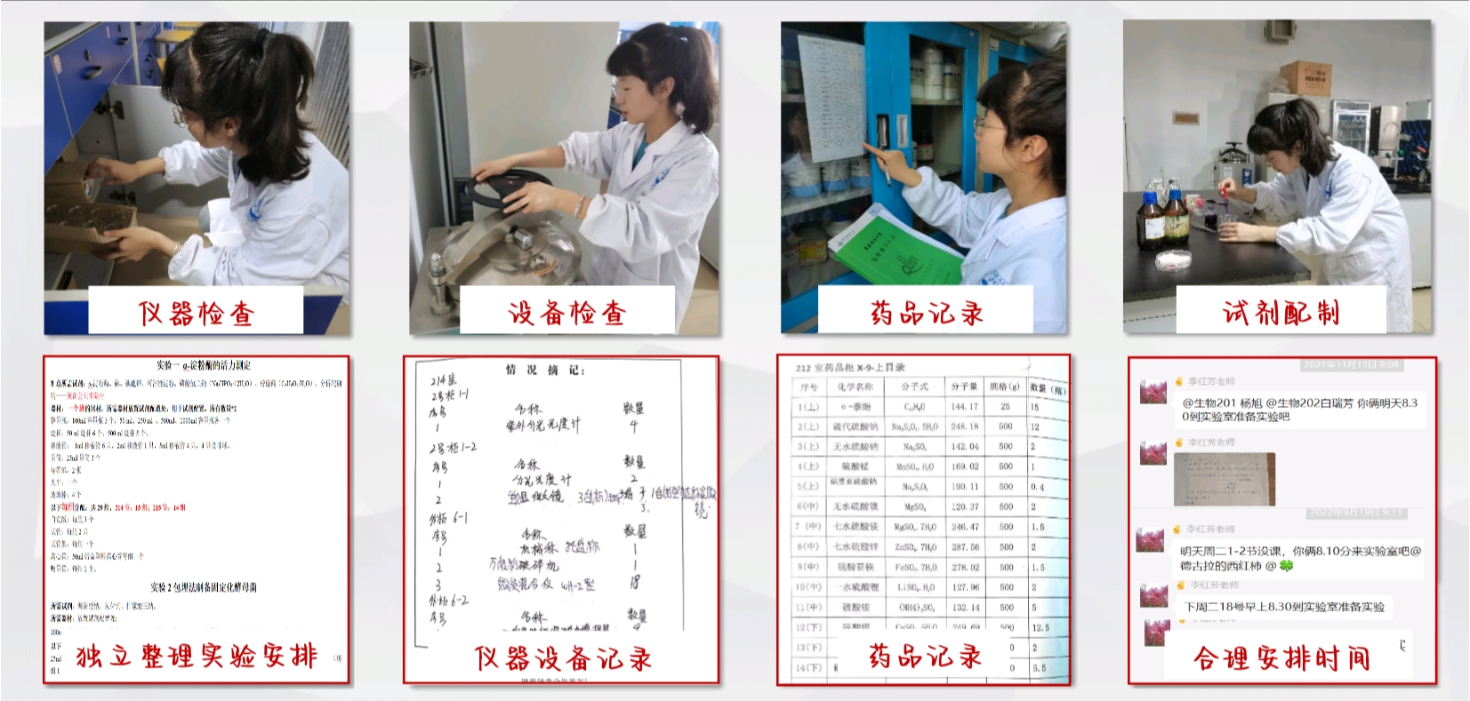 为减轻家庭负担,她积极申请学校的勤工助学岗位,至今已在实验中心担任近两年实验助理,负责四个年级五类实验的实验准备工作和仪器设备的维护,保障一个学期近30个实验顺利进行,累计服务228位同学,工作时长达1000h以上。在工作期间态度认真,注重工作效率,获得老师和同学的一致好评。她不曾抱怨工作的劳累,相反,能够积极协调学习与工作的时间,做好合理的规划与安排,尽自己所能踏实认真的做好每一件事。