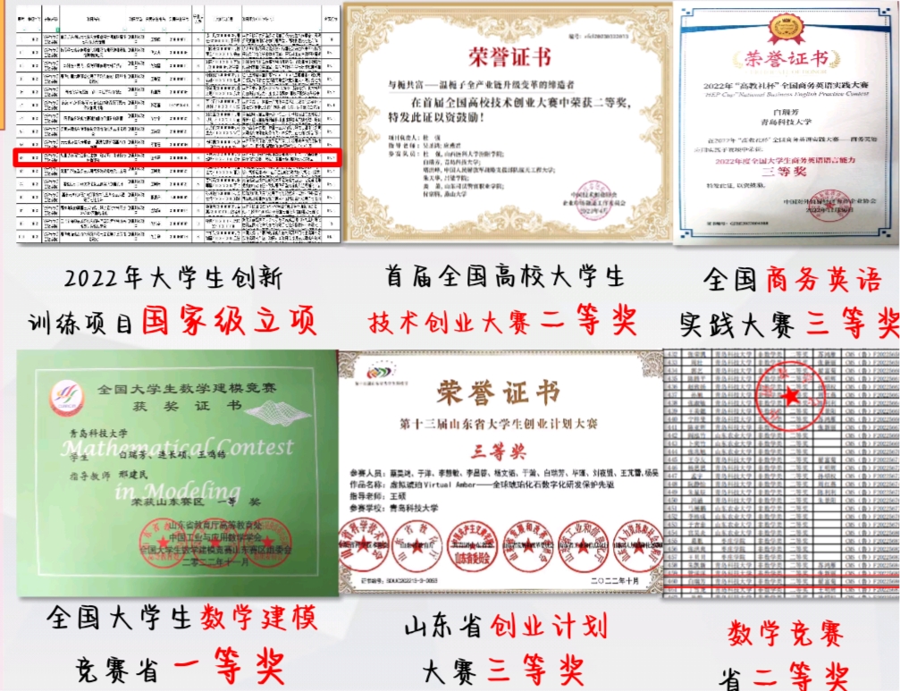 她深知科研的重要性,从大一开始就积极与专业课老师联系,进入实验室,学习相关实验操作方法和相关专业文献,在实验项目的重重阻碍中迎难而上。同时,紧跟学校科技创新的工作调度,重视科技创新的重要性,积极参与各项比赛,累计获国家级奖项4项,省市级奖项4项,校级奖项3项。