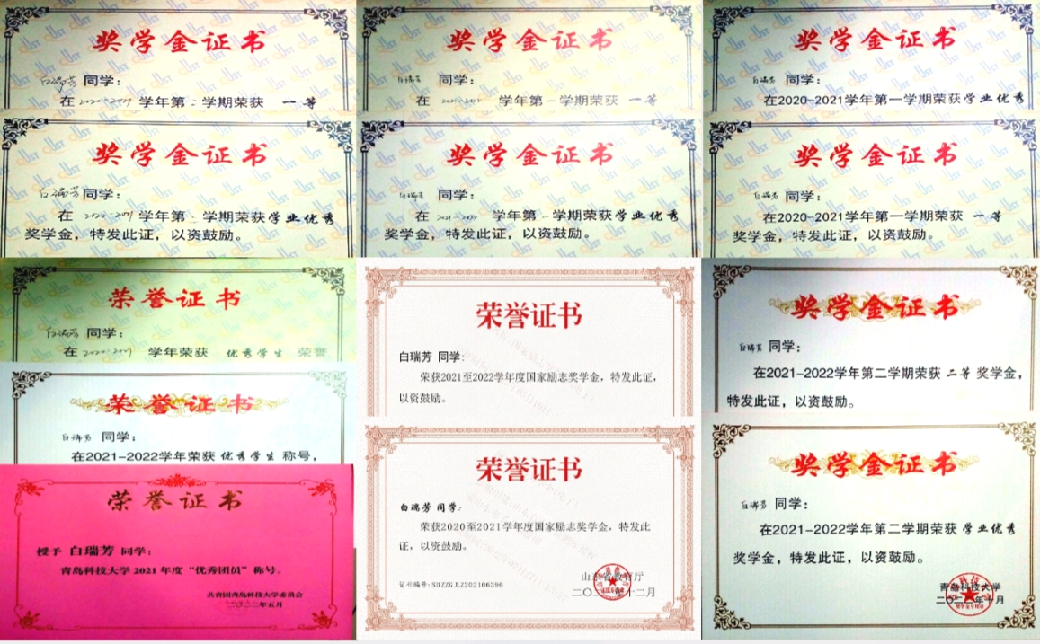 白瑞芳,女,汉族,共青团员,2001年11月出生于山西太原,现为我院生物202班学生。入学以来,获得国家励志奖学金2次、校级奖学金及荣誉称号10余次;在学科竞赛、科技创新领域斩获佳绩,累计获国家级奖项4项,省市级奖项4项,校级奖项3项,能够在各方面严格要求自己,是一名德、智、体、美、劳全面发展的优秀学生。