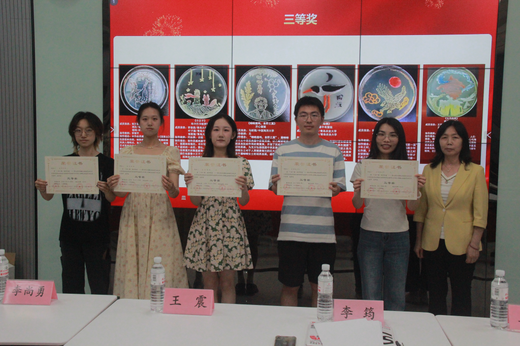 近日,“一皿一境,绘梦青春”第七届全国微生物培养皿艺术大赛青岛赛区校园选拔赛暨中国海洋大学第三届微生物培养皿艺术大赛获奖名单出炉。6月9日,本次赛事颁奖典礼于中国海洋大学鱼山校区药物楼学术报告厅顺利举行。我院共向大赛组委会提交12组作品中获得一等奖1项、三等奖2项、优秀奖1项。