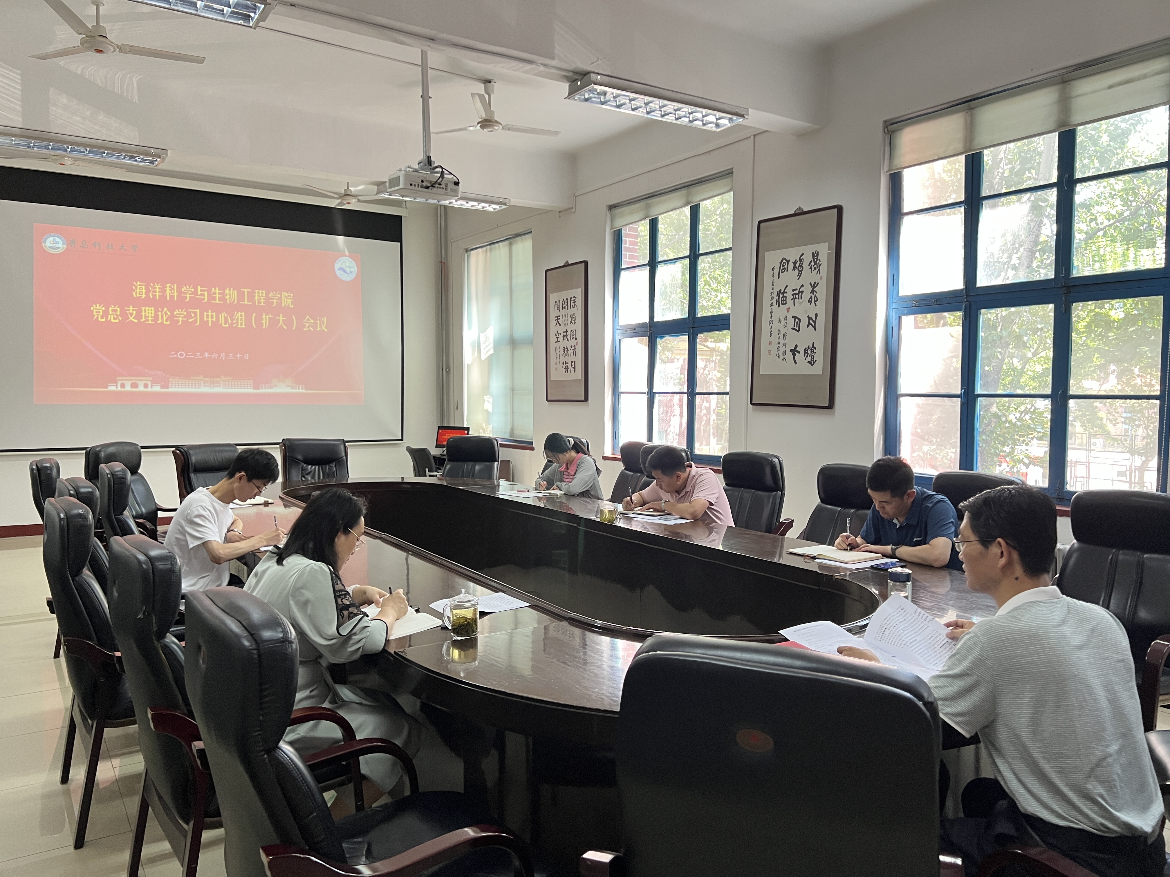 会议上总支委员分别围绕学校召开的主题教育工作推进会、“时代楷模”万步炎的精神事迹、“千万工程”和“浦江经验”以及《青岛科技大学有组织科研暂行办法》相关文件进行了领学交流发言。