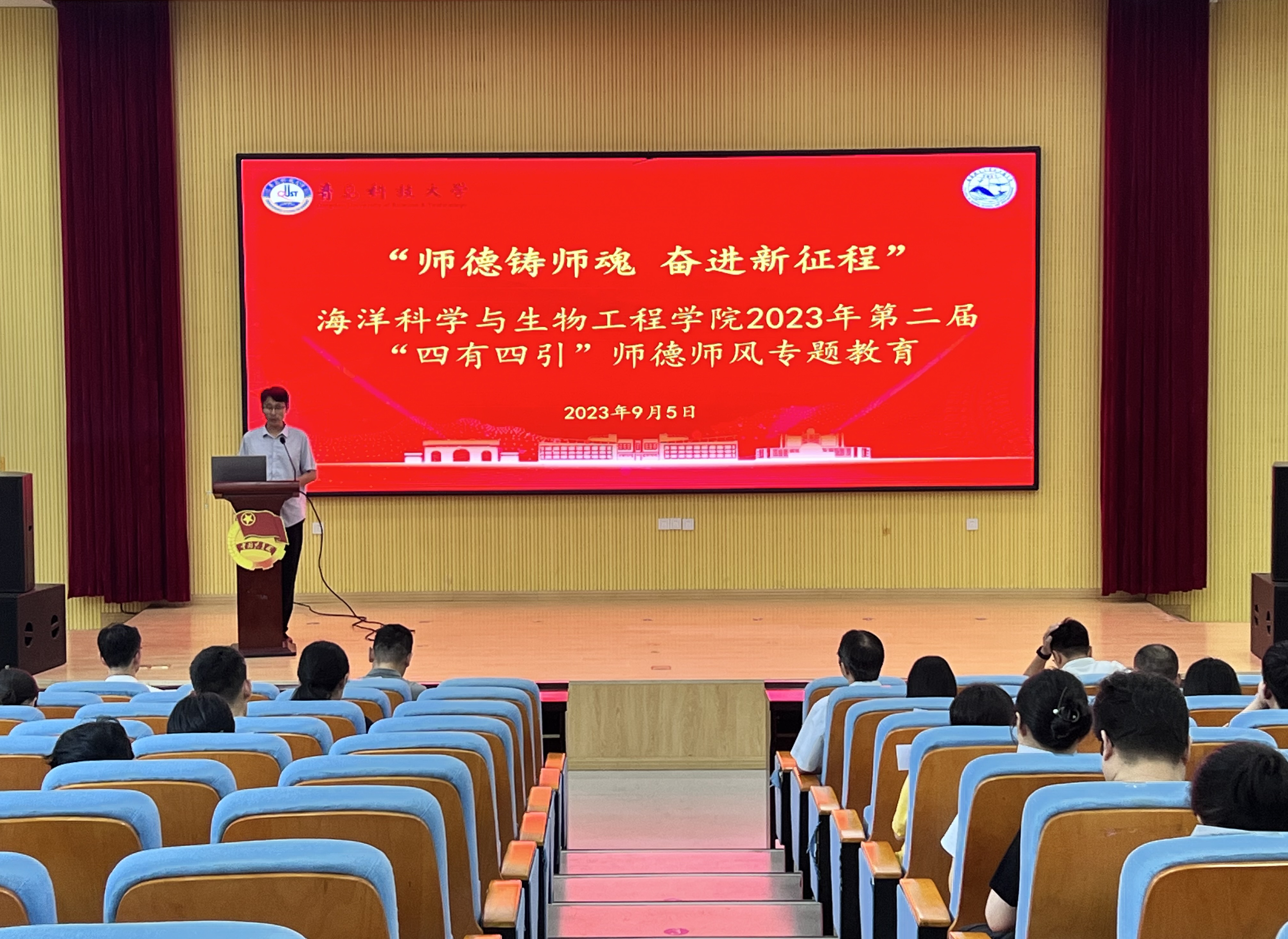 9月5日,我院在尚舜报告厅举行“师德铸师魂 奋进新征程”第二届“四有四引”师德师风专题教育大会,学院全体教师参加会议。会议由副院长顾玉超主持。