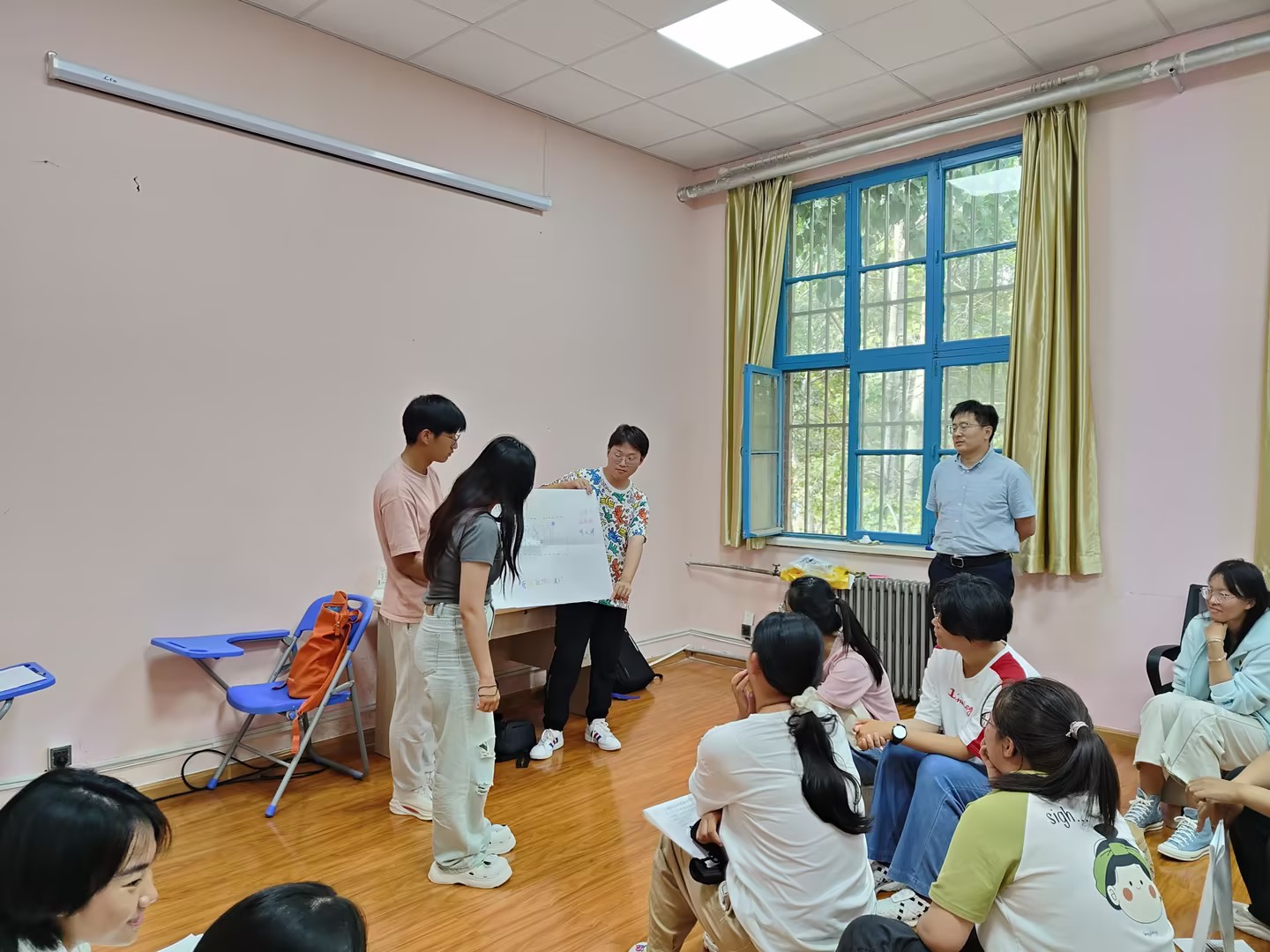 为了帮助2023级新生更好地开启大学生活,增强班级凝聚力和学生归属感,我院学工办主任兼团委书记李浩和新生辅导员郭颖开展“破冰相识”新生适应性团体辅导,活动以“滚雪球”“团队作画”“不倒森林”等方式让参与学生随机组队,协同合作完成团队任务,让同学们在轻松愉快的氛围中增进认识、获得认同。