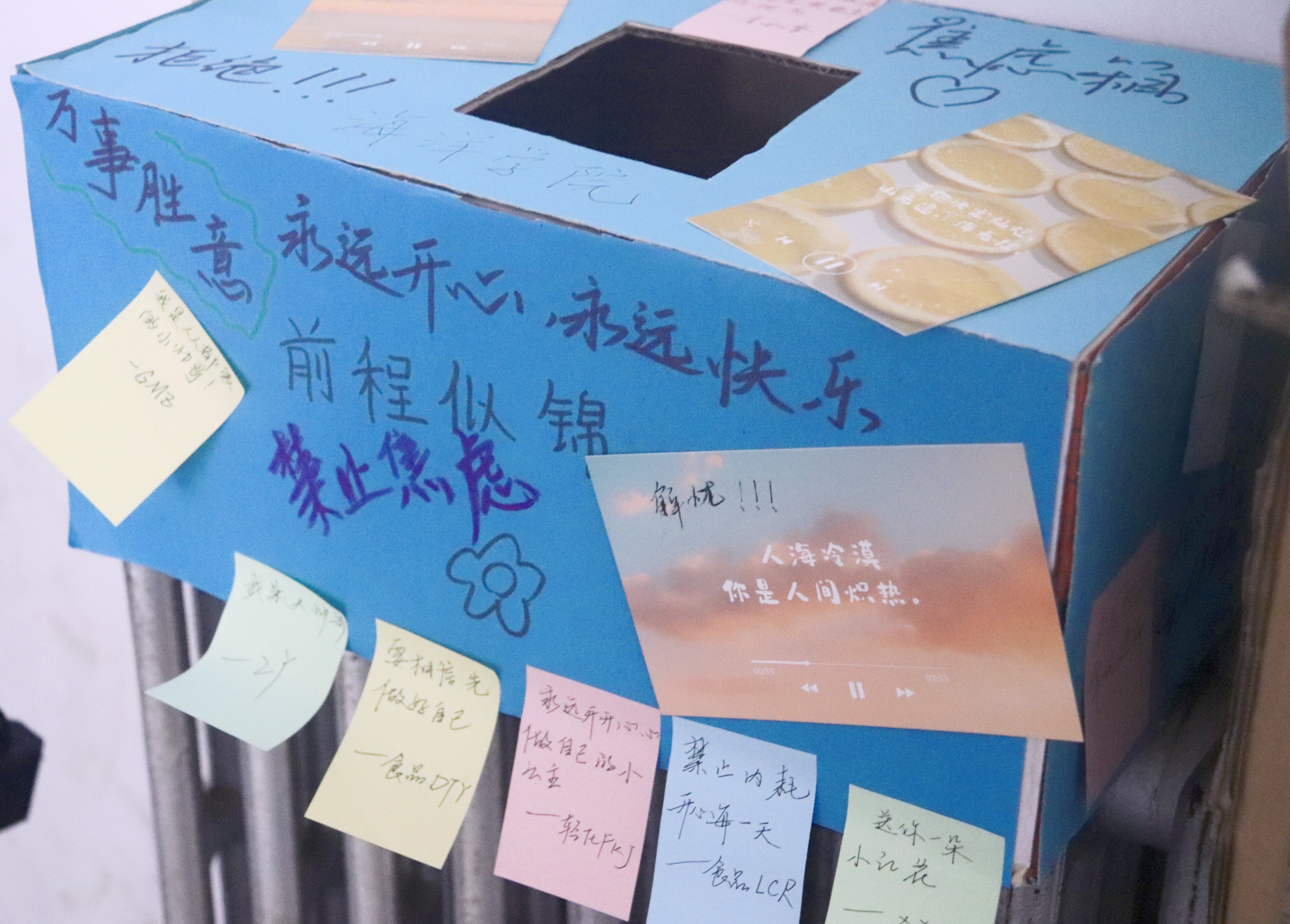 学院组织心理委员及学生会成员在特别制作的KT板上粘贴了众多消极“标签”,并为同学们准备了便利贴,引导同学们用便利贴写下对自己、他人的鼓励话语,来替换消极的自我“标签”。有趣而新颖的活动形式吸引了众多同学驻足参与,当看到展板上贴满带有刻板印象的“标签”时,纷纷表示感同身受并当场撕下,同时留下励志“标签”,鼓励自己,温暖他人,释放心灵,自我激励。