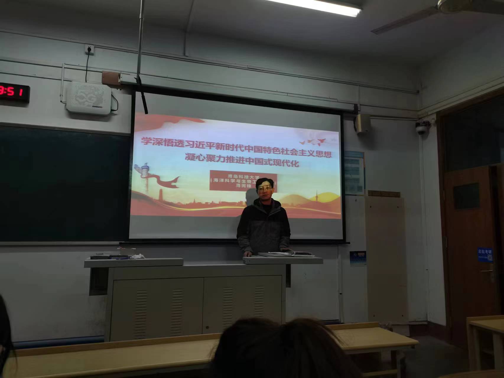 为深入学习贯彻习近平新时代中国特色社会主义思想和党的二十大精神,用习近平新时代中国特色社会主义思想凝心铸魂,筑牢思想根基。11月30日,我院党总支书记周宪锋在二教221开展“学深悟透习近平新时代中国特色社会主义思想 凝心聚力推进中国式现代化”专题党课。我院全体本科生学生党员参与此次学习。