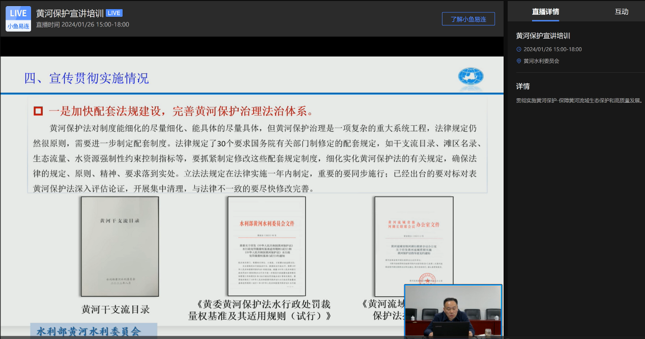 实践团响应团省委社会联络部文件号召,1月26日实践团指导教师李浩老师与队长段亚彤按时参加“青少年黄河保护法普法宣讲线上培训”,积极参加培训备课,学习黄河保护法,增强法治观念,提升依法保护母亲河的能力和素质。