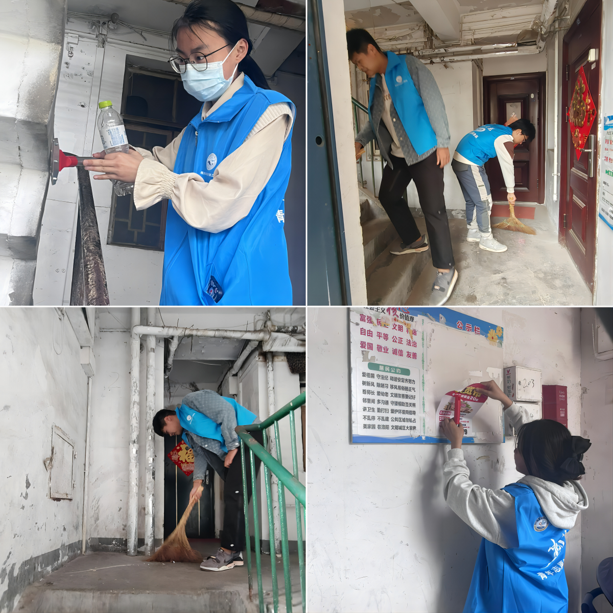 4月30日,我院“小浪花”青年志愿服务队前往市北区洛阳路街道商丘路社区开展“志愿服务进社区 清洁打扫暖人心”志愿服务活动。在社区工作人员的带领下,学生志愿者们明确分工,手拿扫把、簸箕等清扫工具,对社区各卫生死角逐一清理,充分发挥不怕脏、不怕累的优良作风,经过2个多小时热火朝天的劳动,社区环境变得整洁有序。志愿者们的付出得到了居民与社区工作人员的一致赞扬,展现了新时代青年朝气蓬勃的风采。