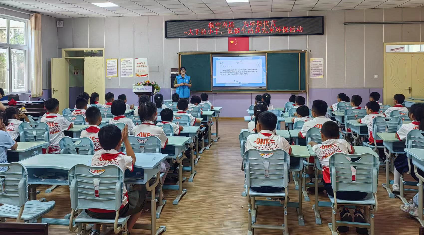 活动伊始,“小浪花”志愿者向同学们宣讲我国塑料制品使用现状及白色污染带来的危害,引导小学生参与其中,通过课堂提问、观看视频、有奖竞答等形式,让“减塑”理念深入人心。同时倡导同学们减少使用塑料袋等一次性用品,宣传环保减塑行动的意义,使绿色环保的观念深入人心,引导更多的学生践行简约适度、绿色低碳生活方式。