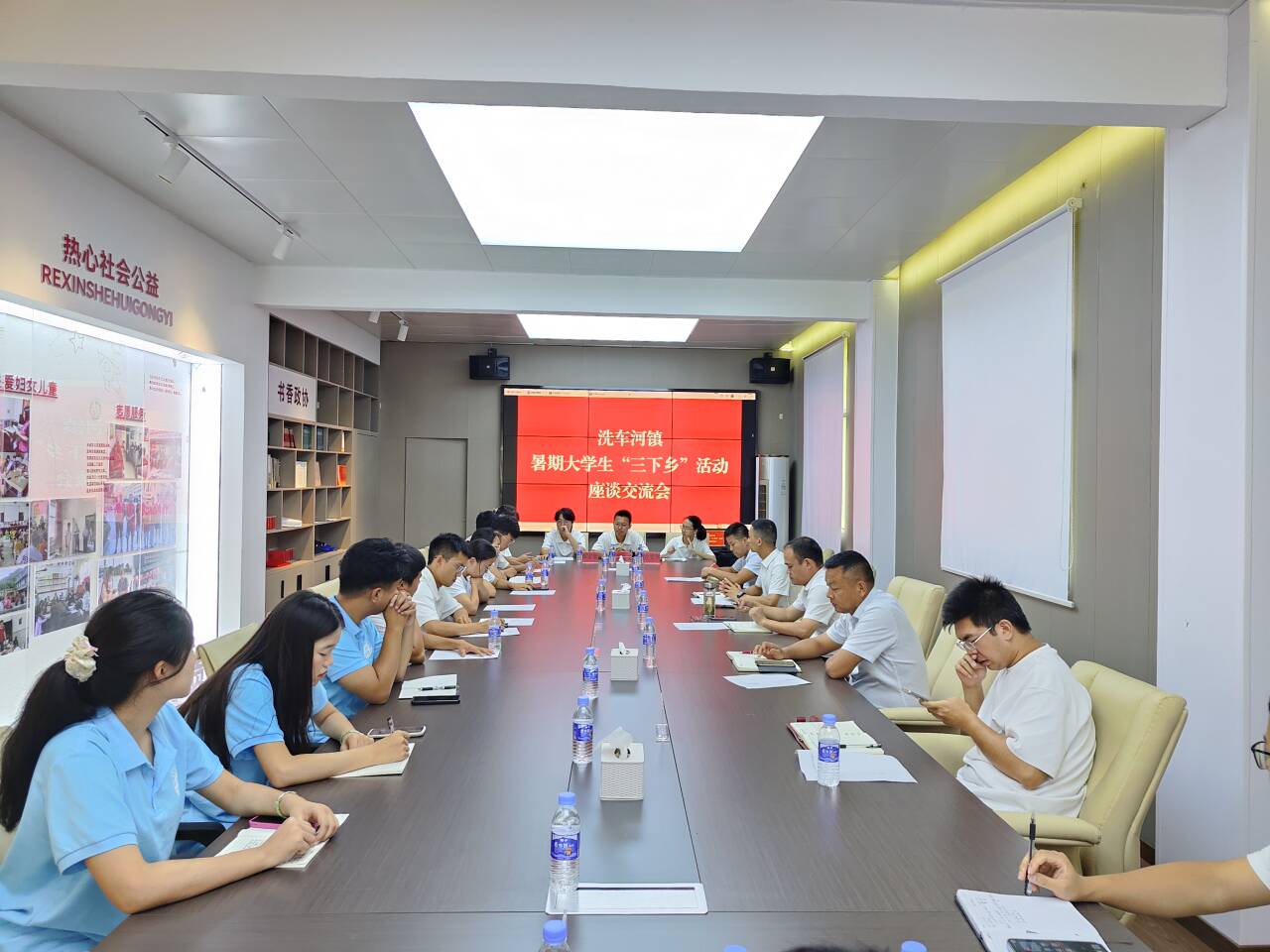 7月29日,湖南省湘西州龙山县洗车河镇举办暑期大学生“三下乡”活动交流座谈会,洗车河镇党委书记唐广洲,镇党委副书记、镇长卢业辉,镇党委委员、副镇长陈建军,团州委相关老师与青岛科技大学“荧光海”志愿宣讲(服务)团、湖南大学“美育湘心”实践团参加活动。