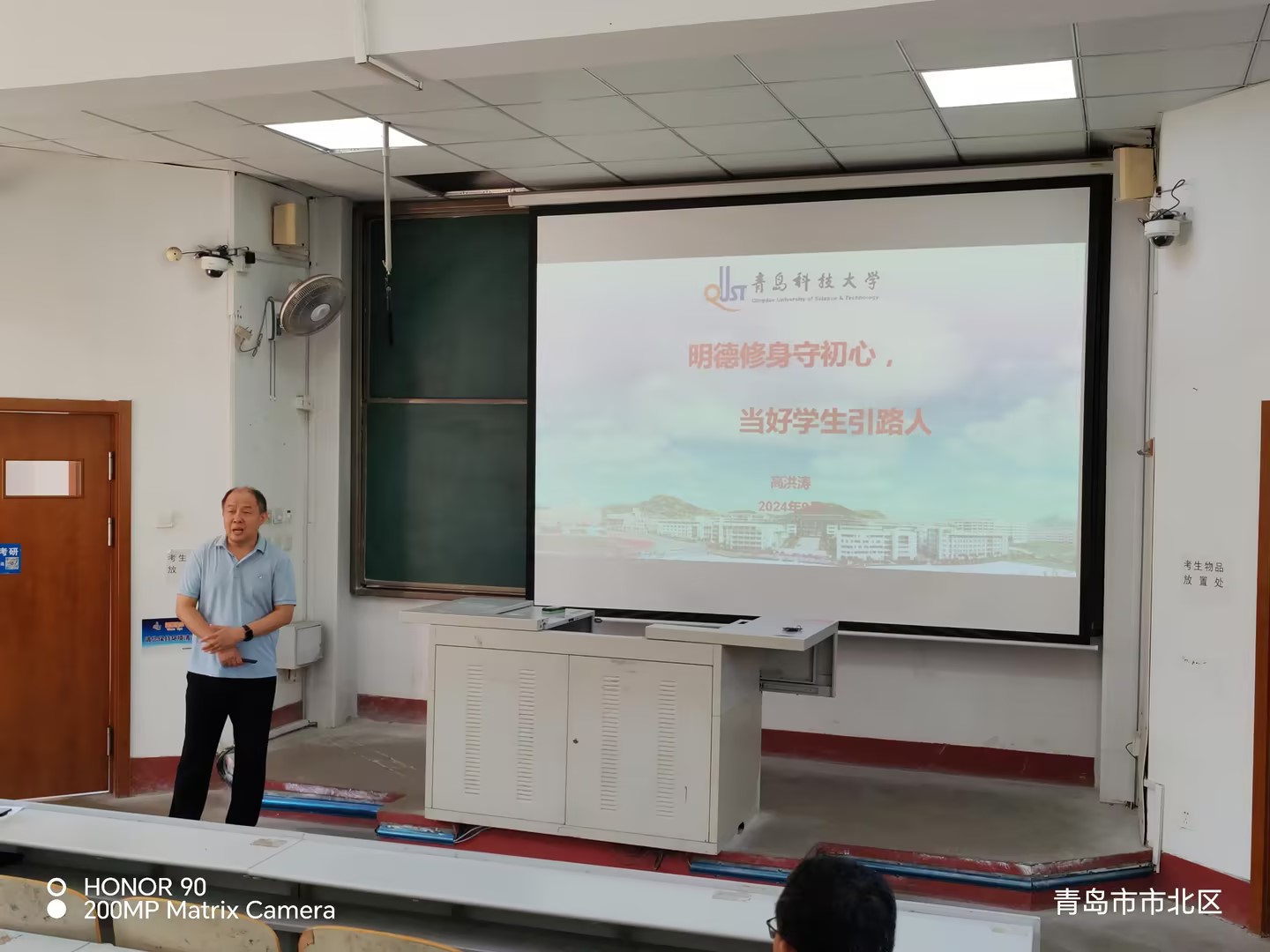会议邀请了省级教学名师高洪涛教授为学院全体教职工做题为“明德修身守初心、当好学生引路人”的报告。高洪涛从师道、新时代好老师的要求以及工作具体实践三个方面阐述了如何做一位合格教师。