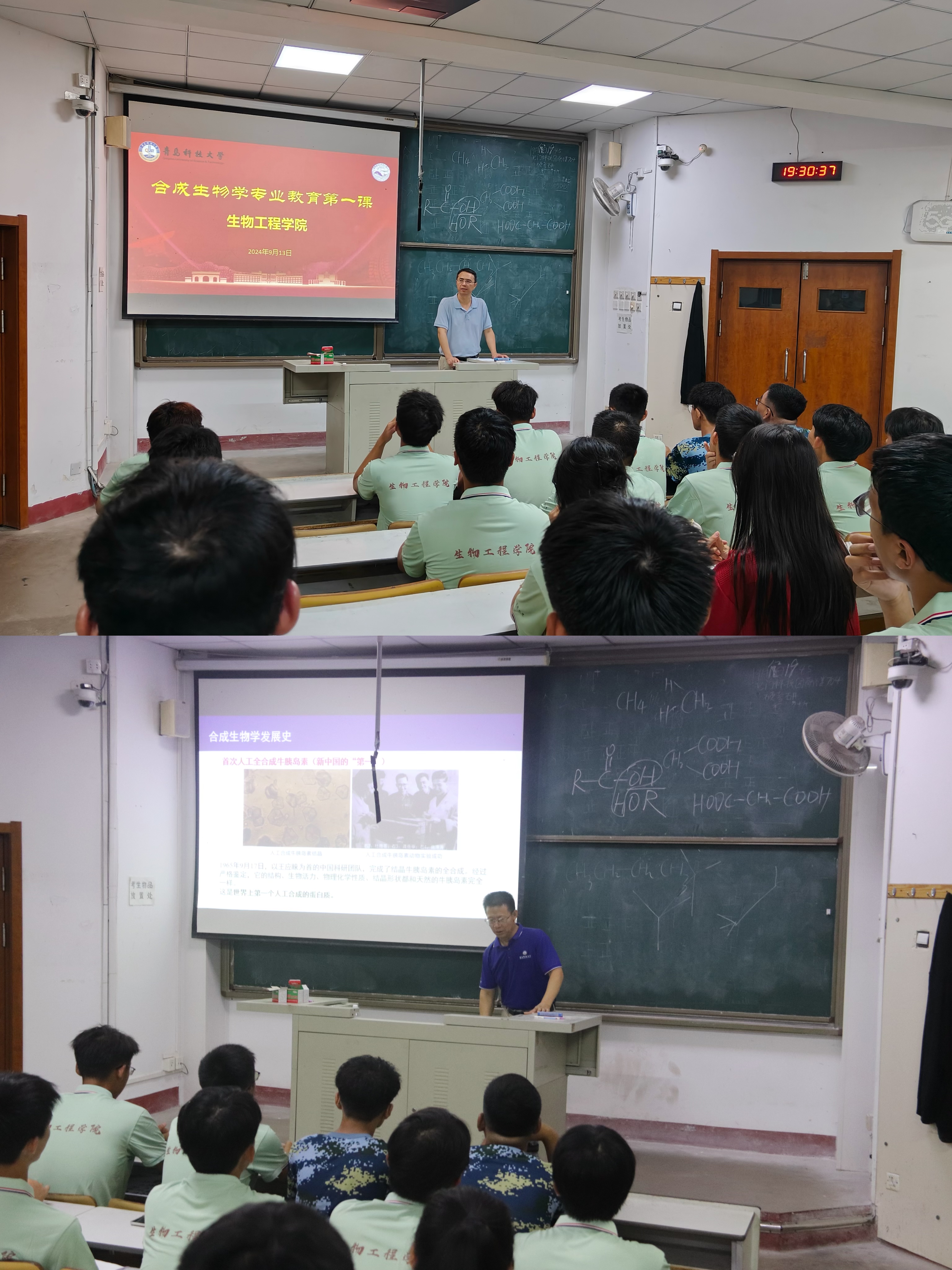 合成生物学专业张恒老师和李俊峰老师对合成生物学专业进行了剖析,介绍其发展史、应用及其布局与发展,同时也分析了此专业的就业前景。学生反响热烈,对其所学专业有了进一步的了解。致病微生物核酸快检团队李勇老师展示科研成果,对重点技术公关及当前科研进展也均有所涉及。陈进和范耀方老师讲解团队在生物医药方面的研究方向及成果,同时讲述了其团队在往期赛事所取得的成就,并在分享的最后,表达对新生到来的欢迎与期待。
