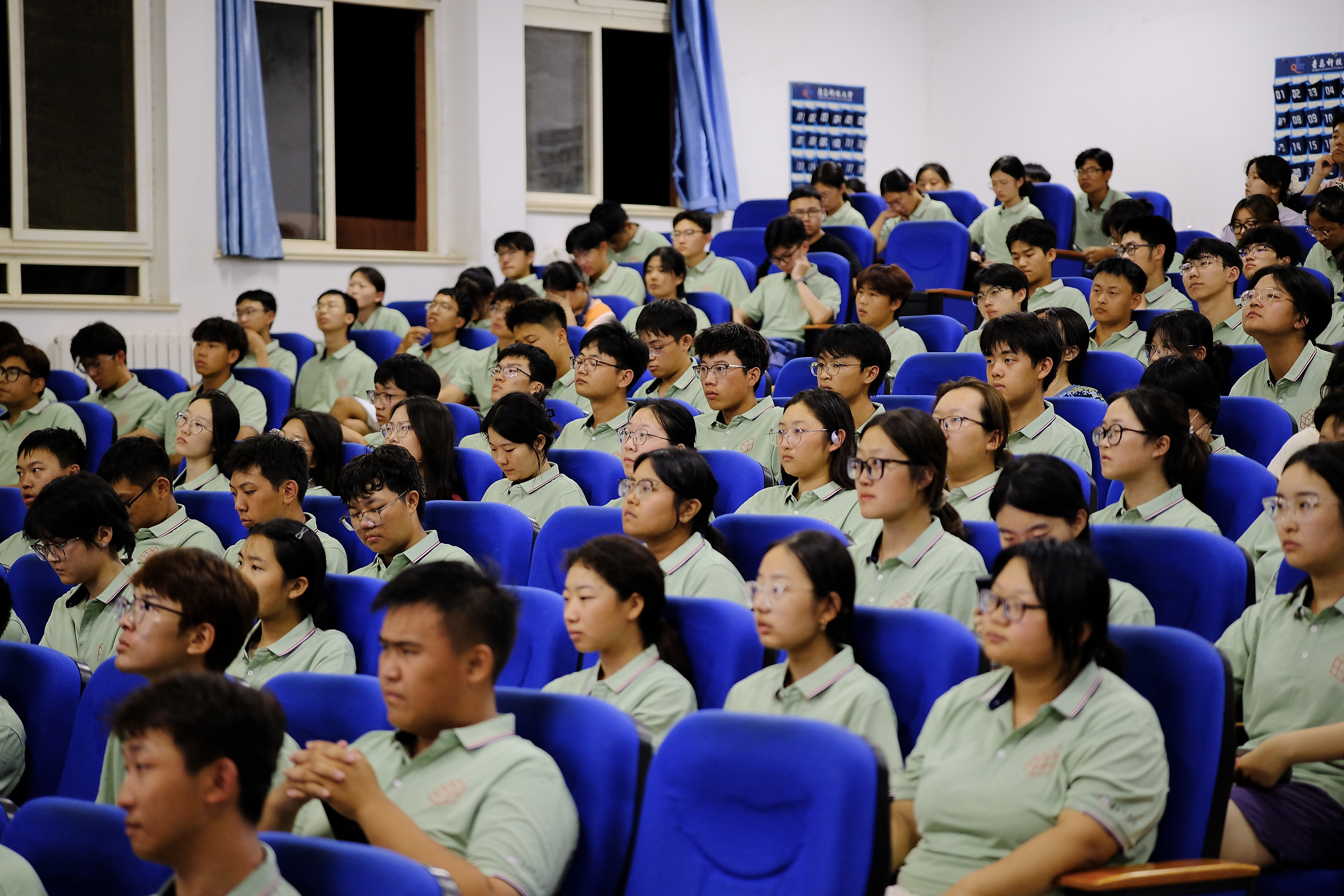 李昉介绍了学院基本情况,从专业特点、学院师资情况、专业能力塑造等方面做了细致解读,并向全体新生送上了六字名言——“立大志,走远路”。这不仅鼓舞了同学们的斗志,还为迷茫的新生指明了前进的路。刘浩以目标为主题,指出了学校的目标是全心全意教育好同学,实现每个同学的小目标,同时告诫同学们要确立自己的目标,规划好未来。接着刘浩书记向同学们讲解了我校保研的分类与获取资格,特别强调了学习,积极参加活动,外语以及体育的重要性。