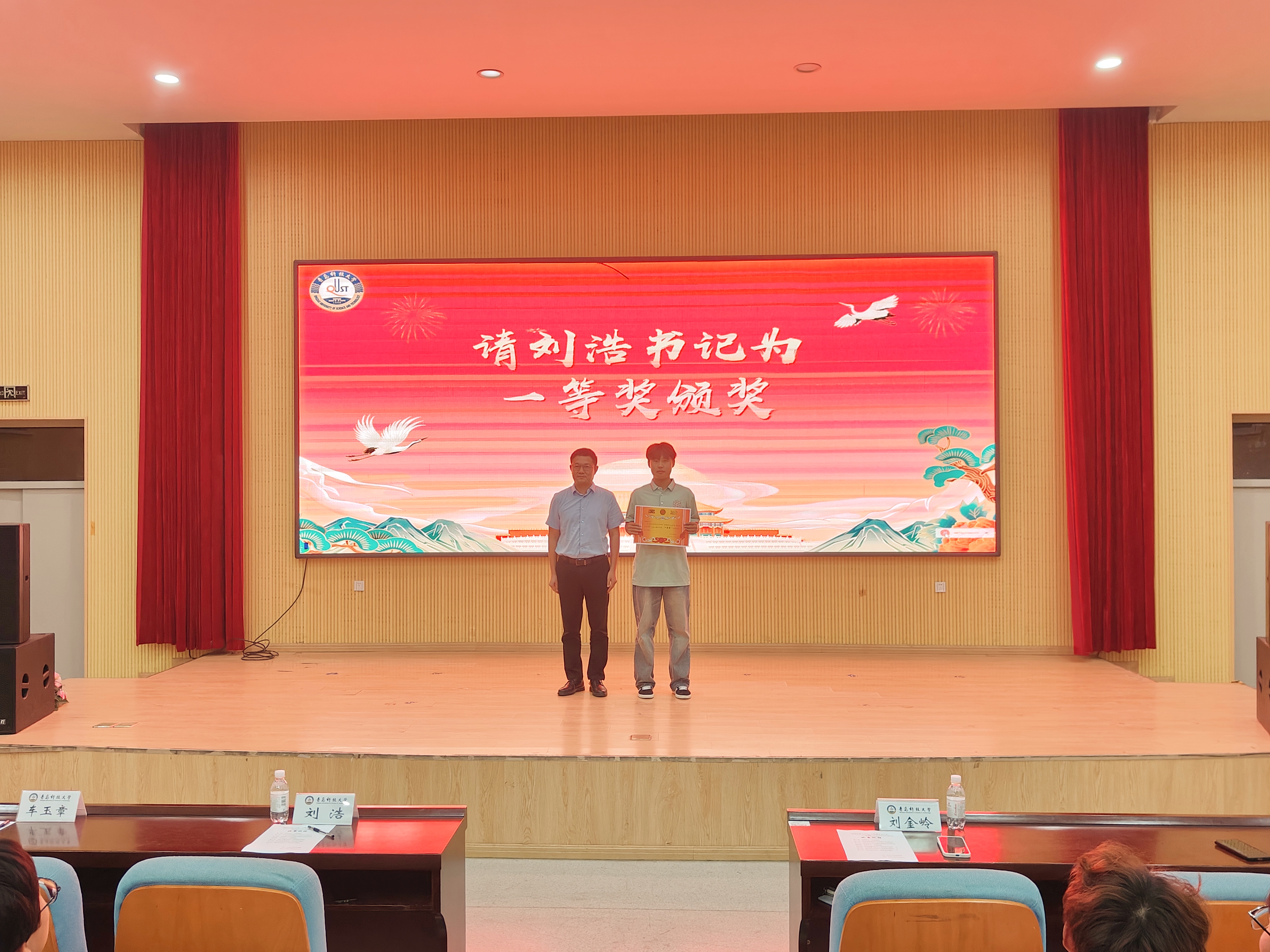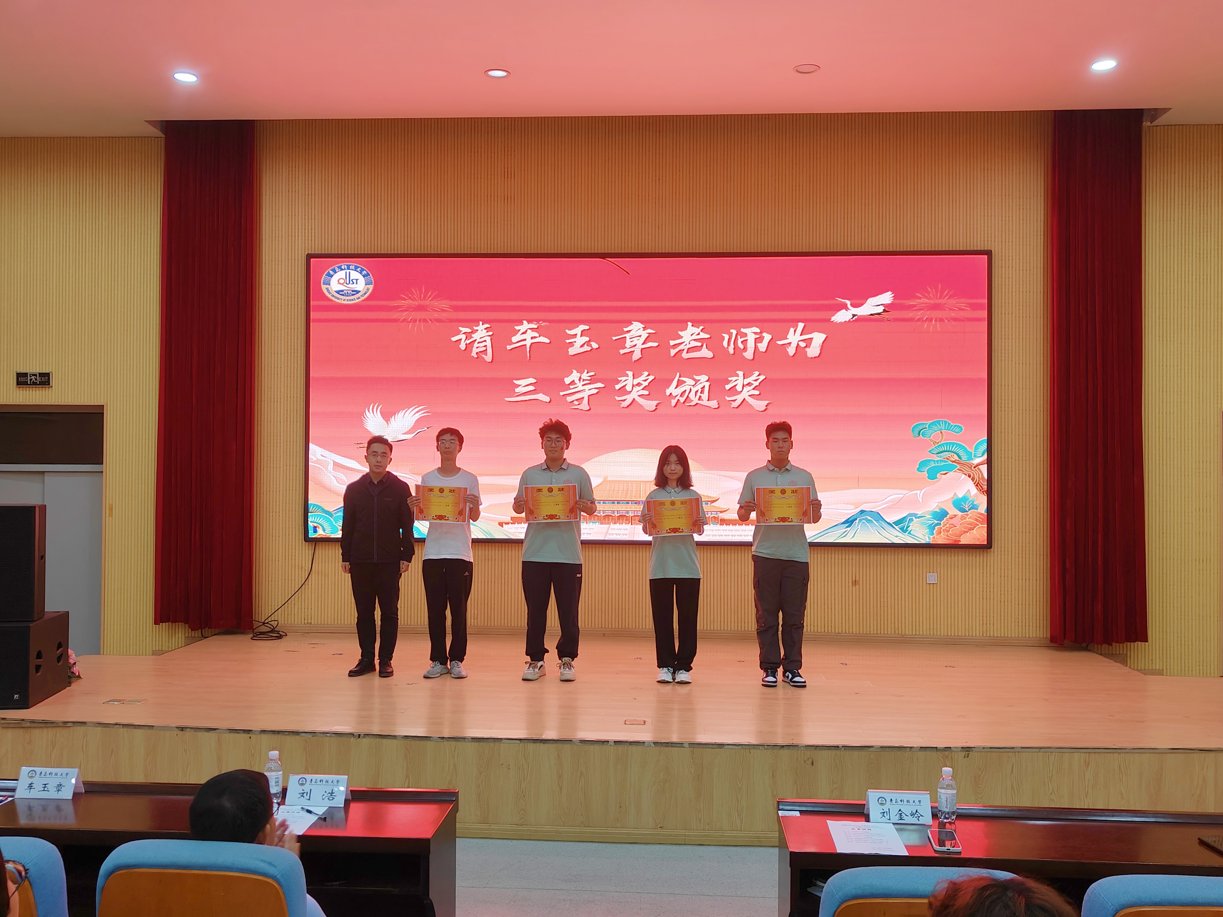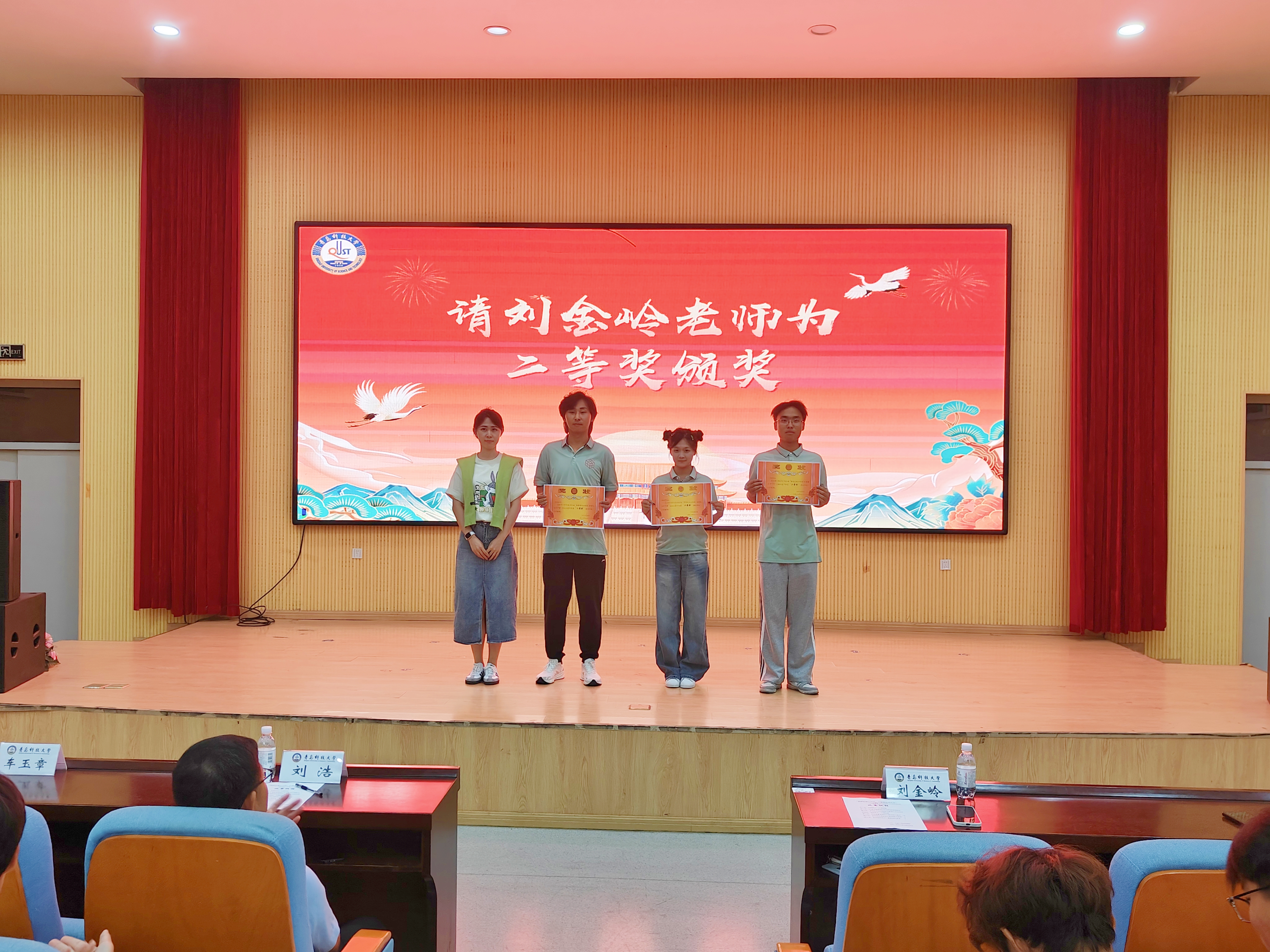 各班精彩的演出在阵阵掌声中落幕,合生242班获一等奖,生物243班、海洋241班、合生241班获二等奖,生物241班、生物242班、生物244班、海洋242班获三等奖,刘浩、刘金岭、车玉章分别为获奖班级颁奖。