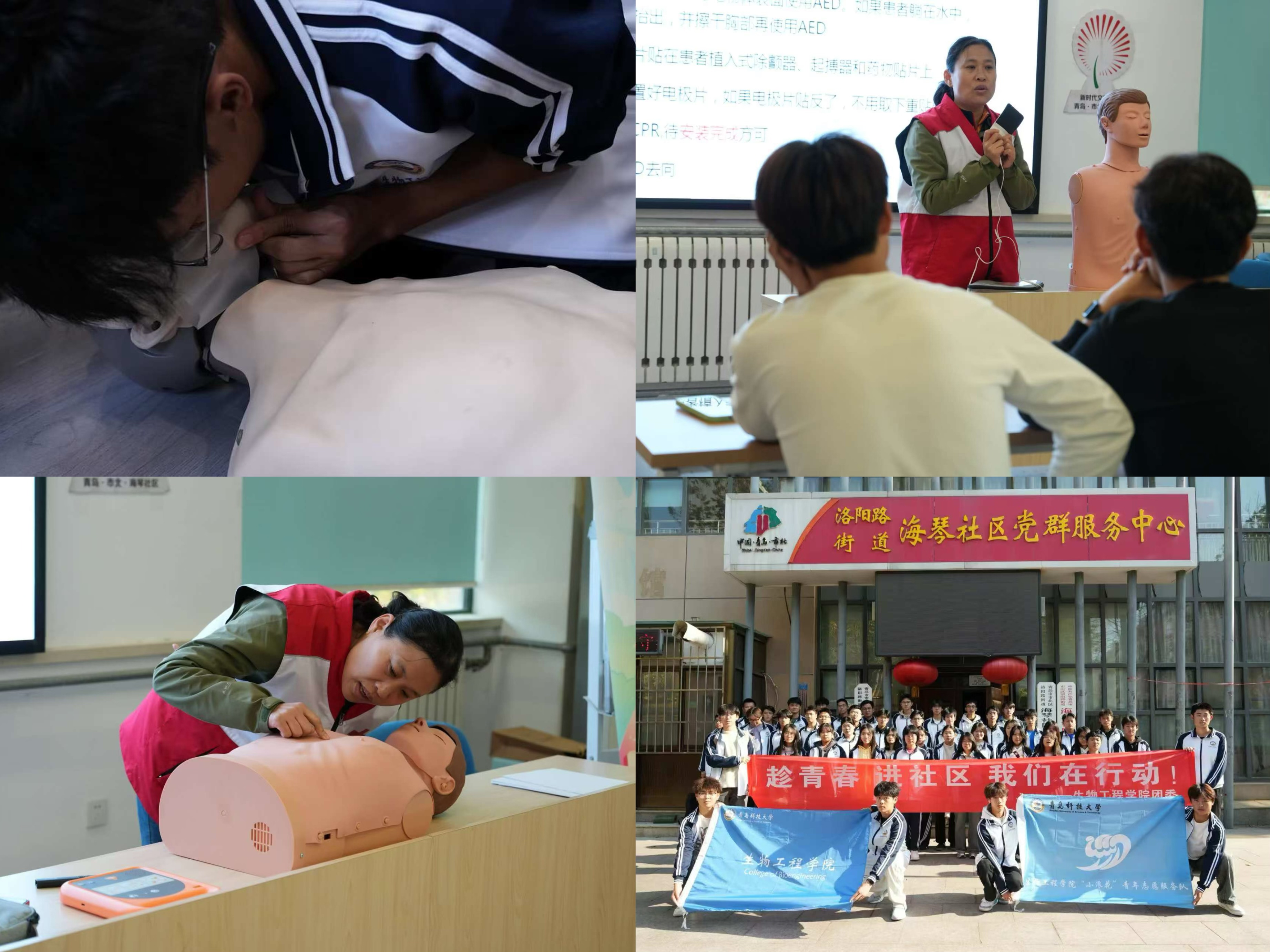 参与救护操作,增强实践能力。一场意义非凡的心肺复苏公益活动在海琴社区党群服务中心热烈开展,专业的急救培训讲师团队通过生动形象的讲解,向在场同学详细介绍了心肺复苏术(CPR)的重要性以及适用场景。在实操演示环节,讲师们利用人体模型,清晰准确地展示了心肺复苏的规范操作流程,包括如何判断患者意识、如何正确进行胸外按压以及人工呼吸的要领等。在讲师们的耐心指导下,大家逐渐掌握了心肺复苏的基本技巧。不少同学们表示,以前对心肺复苏只是有个模糊的概念,通过这次活动才真正明白其重要性并且学会了操作过程,收获满满。本次心肺复苏公益活动,不仅让参与其中的同学掌握了一项重要的急救技能,更为提高整个社会的急救意识和能力迈出了坚实的一步。