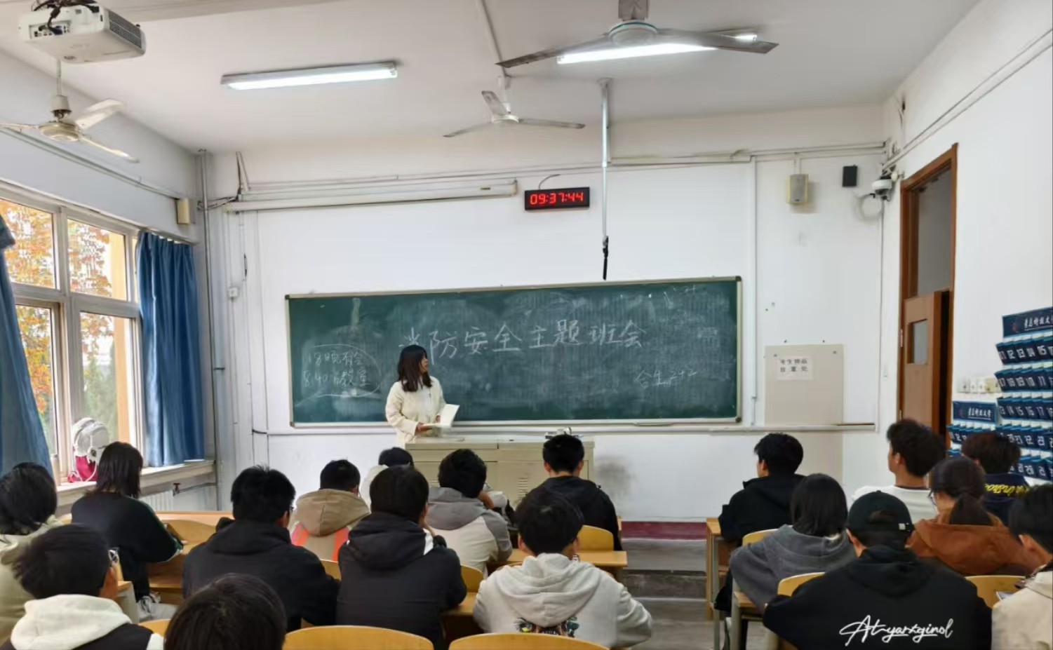 召开主题班会,讲解理论知识。班长安语琦通过案例讲解、知识问答等形式,向同学们普及了火灾预防、逃生技巧等消防知识。生活委员孙邦鲁带领同学们观看宣传视频,了解了灭火器的使用方法及宿舍防火要点。此次班会很大程度上增强了同学们的消防安全意识,提高了应对火灾的能力。