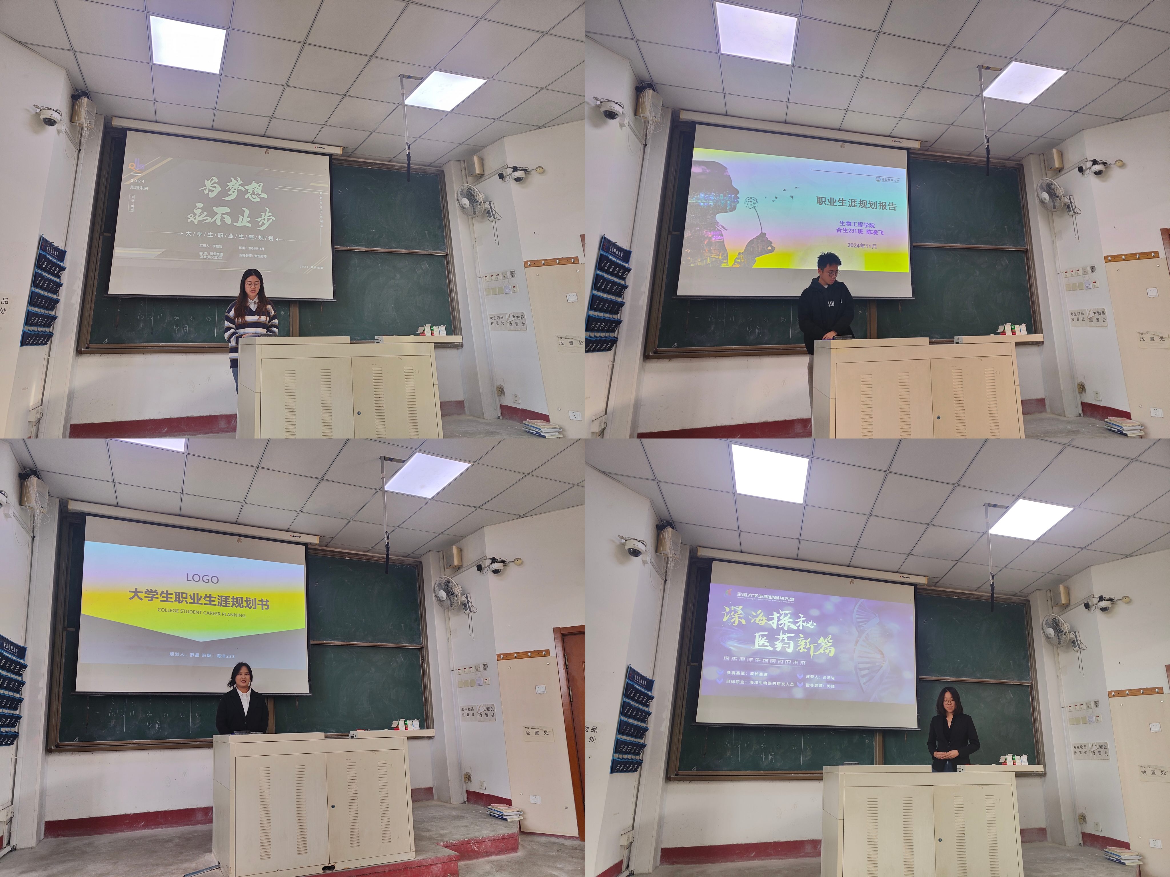 本次大赛分为成长赛道和就业赛道两个赛道进行。成长赛道的参赛选手先后围绕“科研领域的服务员”、“初心不忘 赋能成长”、“深海探秘 医药新篇”、“合聚未来 成致未来”等主题,就自我认知、职业分析、成长计划、未来规划等内容,生动讲述了自己树立职业目标并围绕目标不懈努力的成长过程。就业赛道的选手们纷纷陈述了个人的求职意向和职业准备情况,展示了自身素质与岗位能力。评委们根据其规划内容、表达能力、创新思维等多方面进行综合评分。