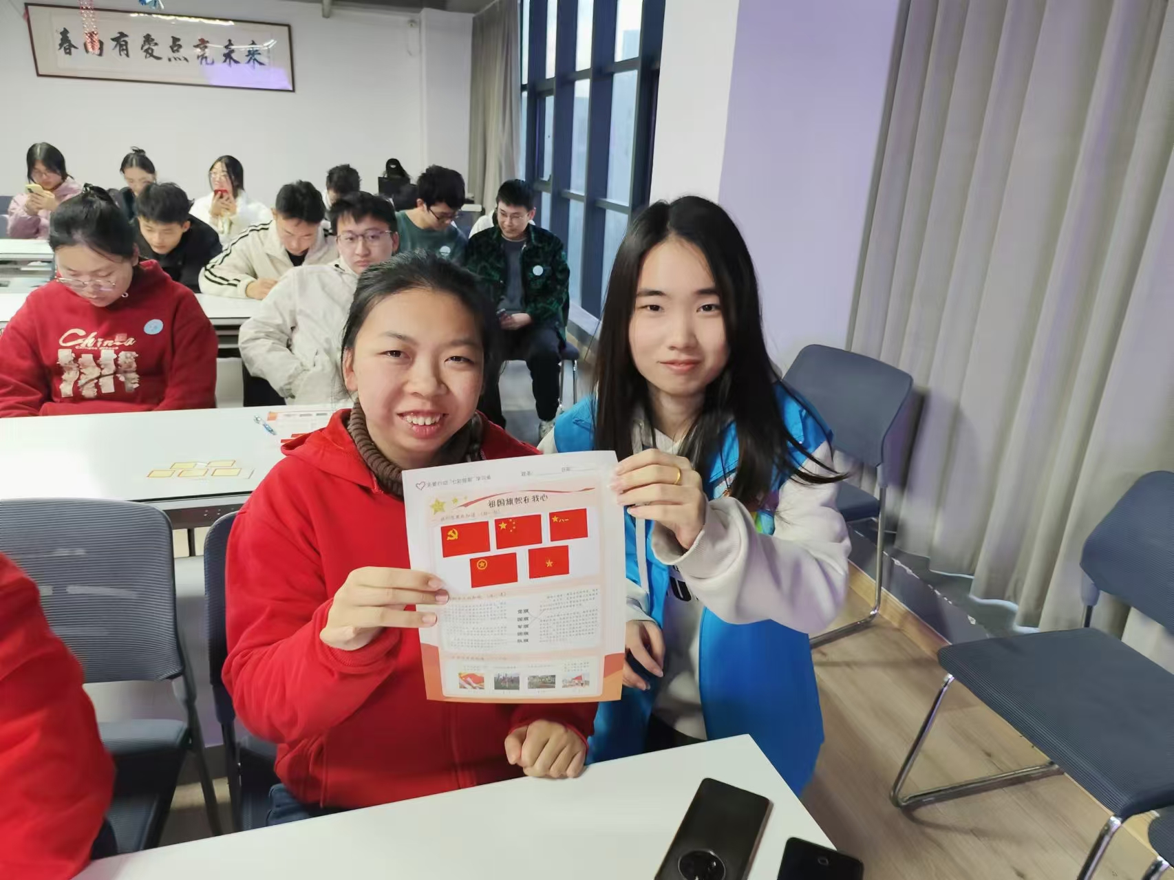课堂上,志愿者以生动易懂的方式向孩子们传授爱国主义文化知识,深入浅出的讲解让孩子们沉浸其中,对祖国有了更为深刻的认识与强烈的认同感。随后,在“旗帜在我心中”贴一贴、连一连的互动环节里,残障孩子们在志愿者的协助下积极参与,通过对旗帜图案的认知与连接,加深了对国家象征的理解。活动末尾,孩子们纷纷写下想对祖国和大学生志愿者们说的话,这些文字不仅是孩子们内心的真情流露,更见证了此次志愿服务活动在他们心中种下的希望与信念的种子。