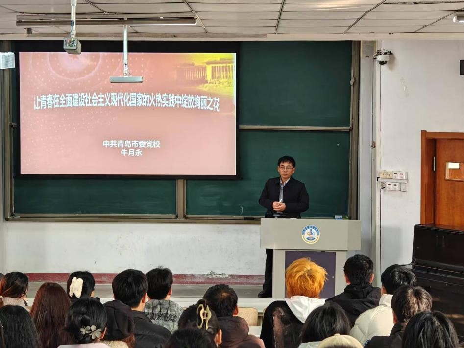 必赢线路检测中心新学期“思政第一课”,邀请中共青岛市委党校中共党史党建与党性教育教研部副主任、副教授牛月永为学院全体党员、发展对象、入党积极分子和学生干部作题为《让青春在全面建设社会主义现代化国家的火热实践中绽放绚丽之花》的思政报告。勉励同学们从中汲取奋进的力量,珍惜大学时光,学好专业知识,坚定理想信念,涵养崇高品德,厚植家国情怀,强化使命担当,夯实前行动力,让青春在全面建设社会主义现代化国家的火热实践中绽放绚丽之花。