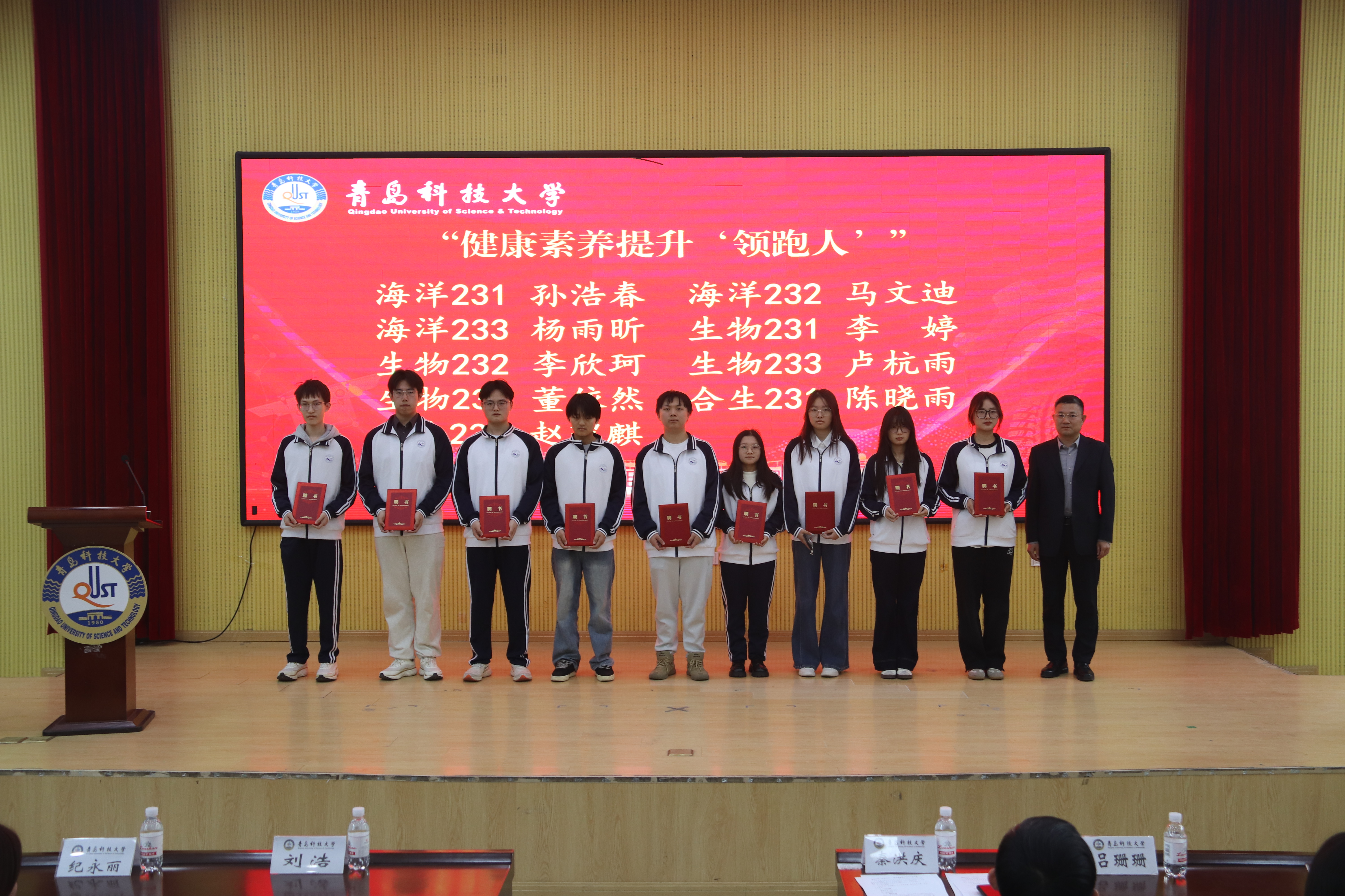 刘浩为“健康素养提升‘领跑人’”颁发聘书。他在总结讲话中强调了健康素养的重要性,指出健康是人生宝贵的财富和学习生活的基石,只有德智体美劳五育协同发力,才能筑牢健康根基。他希望领跑人代表勇担责任,发挥榜样作用,带领必赢线路检测中心学生积极参与到体育活动中,展现青春活力,养成健康体魄,塑造健康人格,实现全面发展。