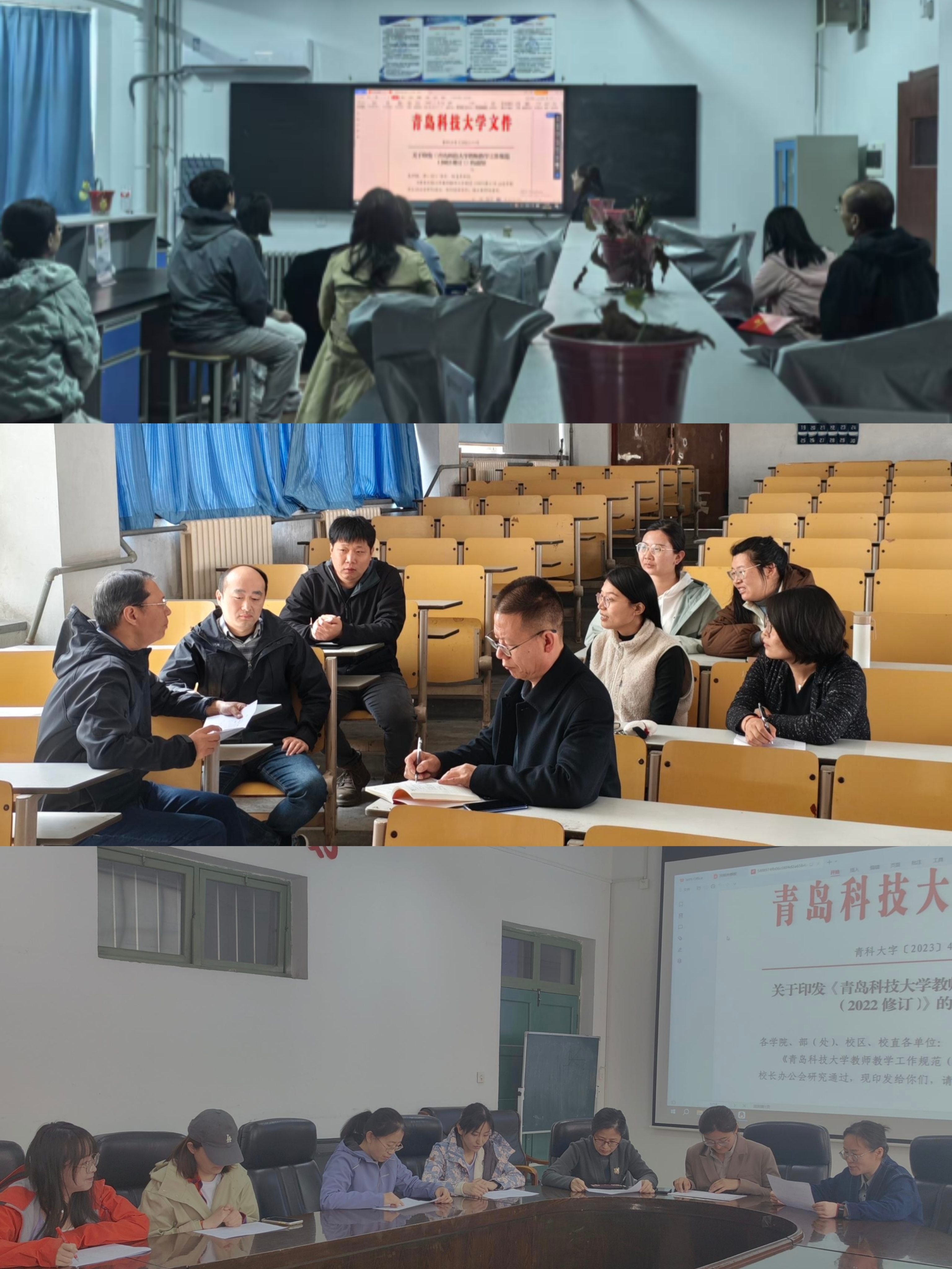 4月8日,必赢线路检测中心生物工程、合成生物学、海洋科学专业分别在实验中心207、一教402、一政213组织了教研室内部研讨学习《青岛科技大学教师教学工作规范(2022 修订)》文件。老师们从师德师风、教师培训、教师资格任职、课堂教学环境中的职责(教学大纲、科技前沿和课程思政、调停课、辅导答疑、理论和实践课考核及考试方式)几个方面进行了学习。