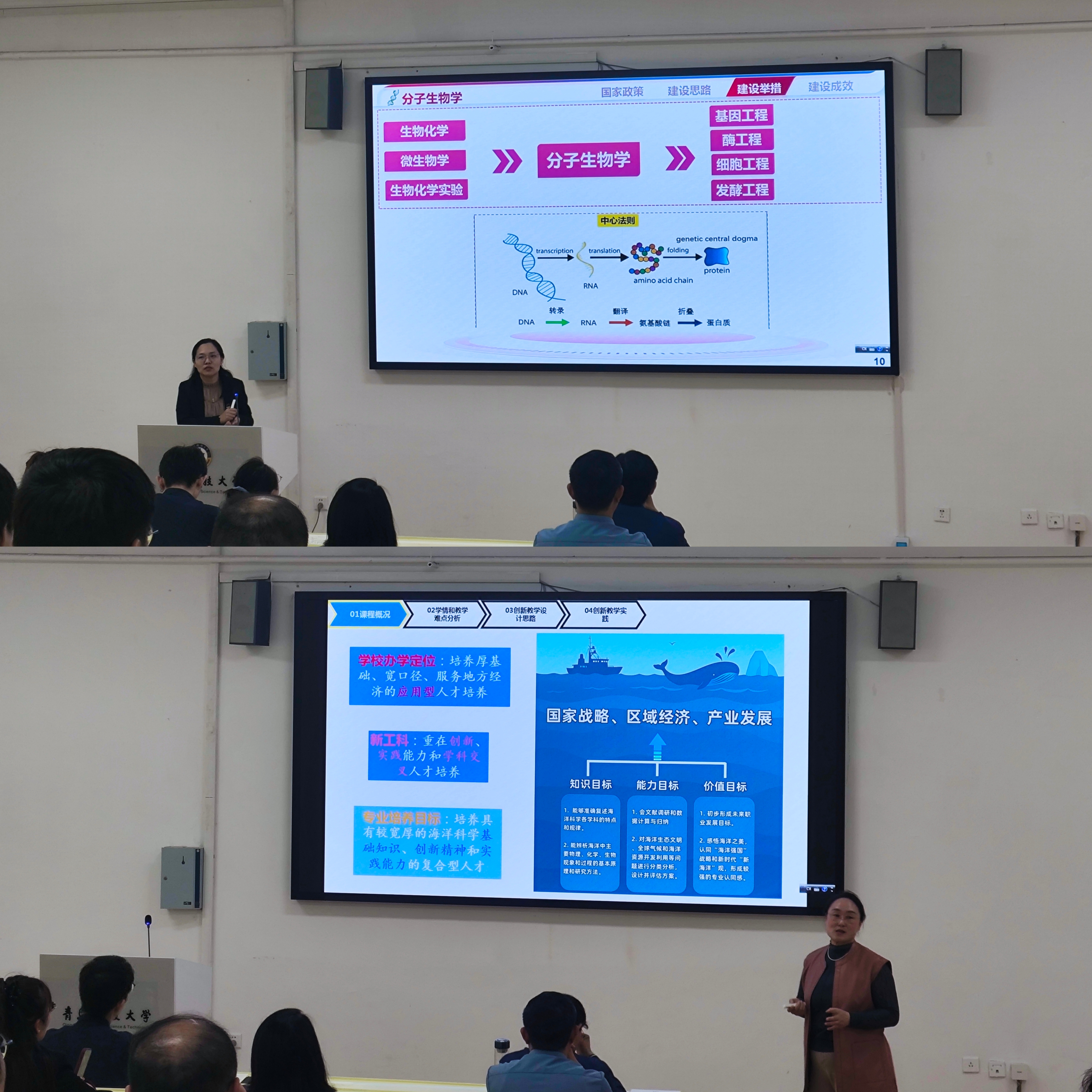 李昉分享省级一流课程海洋科学导论的建设经验。该课程从知识、能力、价值三维度设计目标,针对学情从内容、模式、评价创新,构建课程思政体系,打造混合式教学资源与课程群,融入科研项目与虚拟教学,建立多维度评价体系。