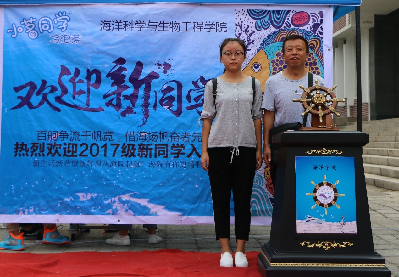 “新掌舵,留寄语” 报到结束后,新生与家长在船舵前拍照留念,象征着新生掌舵遨游于海,并与家长一起在“领航寄语”板上留下了他们对大学四年的美好憧憬以及家长们对他们的殷切期望。