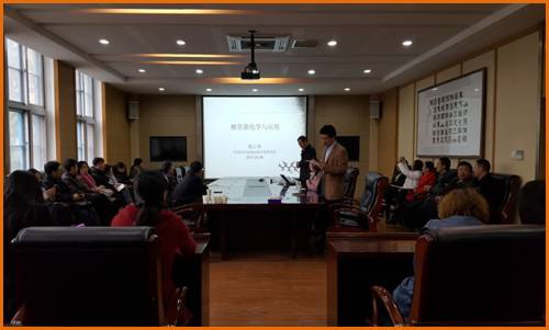范院长首先对郭占勇研究员的到来表示热烈欢迎,郭研究员从自然界分布广泛的多糖开始,介绍了多糖的分类、功能以及应用。通过对壳聚糖定向功能修饰,合成了多个系列的壳聚糖衍生物。这些成果应用在医药、保健品和化工制品中,将会产生巨大的经济和社会效益。最后,郭研究员与参会的老师和同学进行了深入交流。