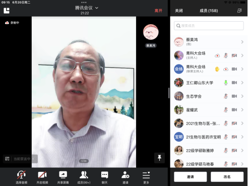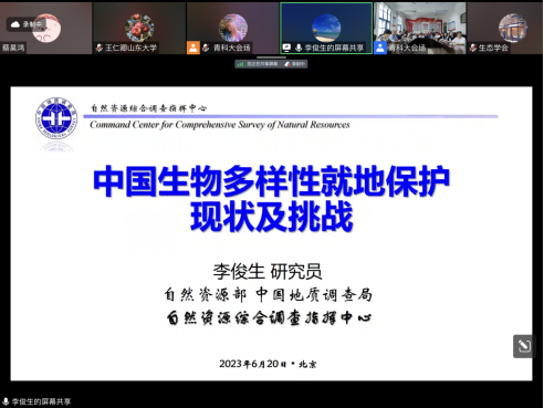 2023年6月20日上午,由山东省生态学会与青岛科技大学我院共同主办的“生态大讲堂”系列讲座,通过线上与线下结合的方式顺利举行。报告会邀请中国地质调查局自然资源综合调查中心副总工程师-李俊生研究员,中国科学院西双版纳热带植物园-星耀武研究员,分别为师生带来题为“我国生物多样性就地保护现状及挑战”、“北温带木本植物多样化历史”的学术讲座。本次讲座由山东省生态学会刘大胜秘书长与青岛科技大学我院王硕教授主持,来自各地高校及科研机构的300多位学者和研究人员参与了此次会议。