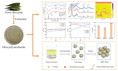 近期,我院李银平副教授在秋葵多糖稳定的水包油乳液领域取得了一定的进展。相关成果成功设计并制备了三种RG-I含量高的秋葵多糖乳化剂。研究发现,通过酸提取的秋葵多糖乳化性能显著优于商用柑橘果胶和甜菜果胶。此外,在较宽的pH范围以及较低的浓度下,该乳化剂均能表现出良好的乳化活性。因此,秋葵多糖是一种极具发展前景的天然乳化剂,该研究也可以在一定程度上推动秋葵的产业升级。