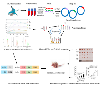 近日,必赢线路检测中心顾玉超团队在国际药学顶级期刊《Acta Pharmaceutica Sinica B》(中科院一区TOP,IF = 14.7)发表了题为“A novel shark VNAR antibody-based immunotoxin targeting TROP-2 for cancer therapy”的研究论文(DOI: org/10.1016/j.apsb.2024.08.023),该研究基于鲨鱼纳米抗体构建了高效的抗肿瘤免疫毒素。顾玉超教授为本论文的唯一通讯作者,青岛科技大学为第一完成单位,来自中国海洋大学、青岛海洋科技中心、山东省第二人民医院和三亚深海化合物资源中心等单位的合作者提供了重要支持。