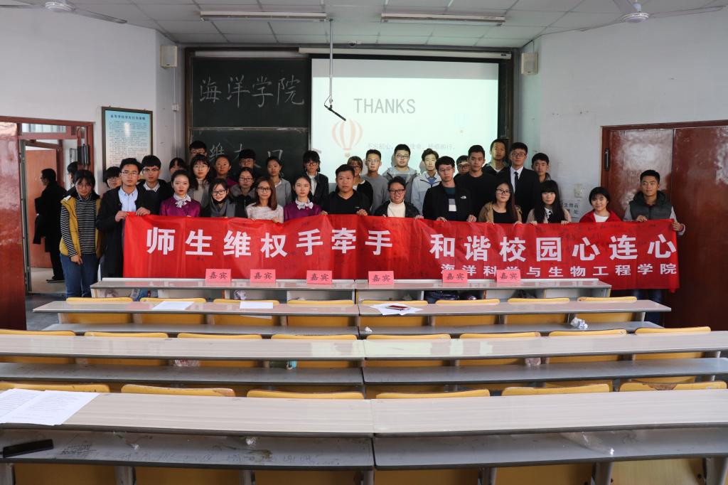 为了切实做好学生权益保障工作、了解民情民意,10月31日下午两点,我院维权日启动仪式在一教301隆重举行,我院副主席付洪喜、杨文艺、陈震,纪检部部长王炳威以及我院15级、16级、17级各班生活委员和舍长等学生干部参加了本次启动仪式。
