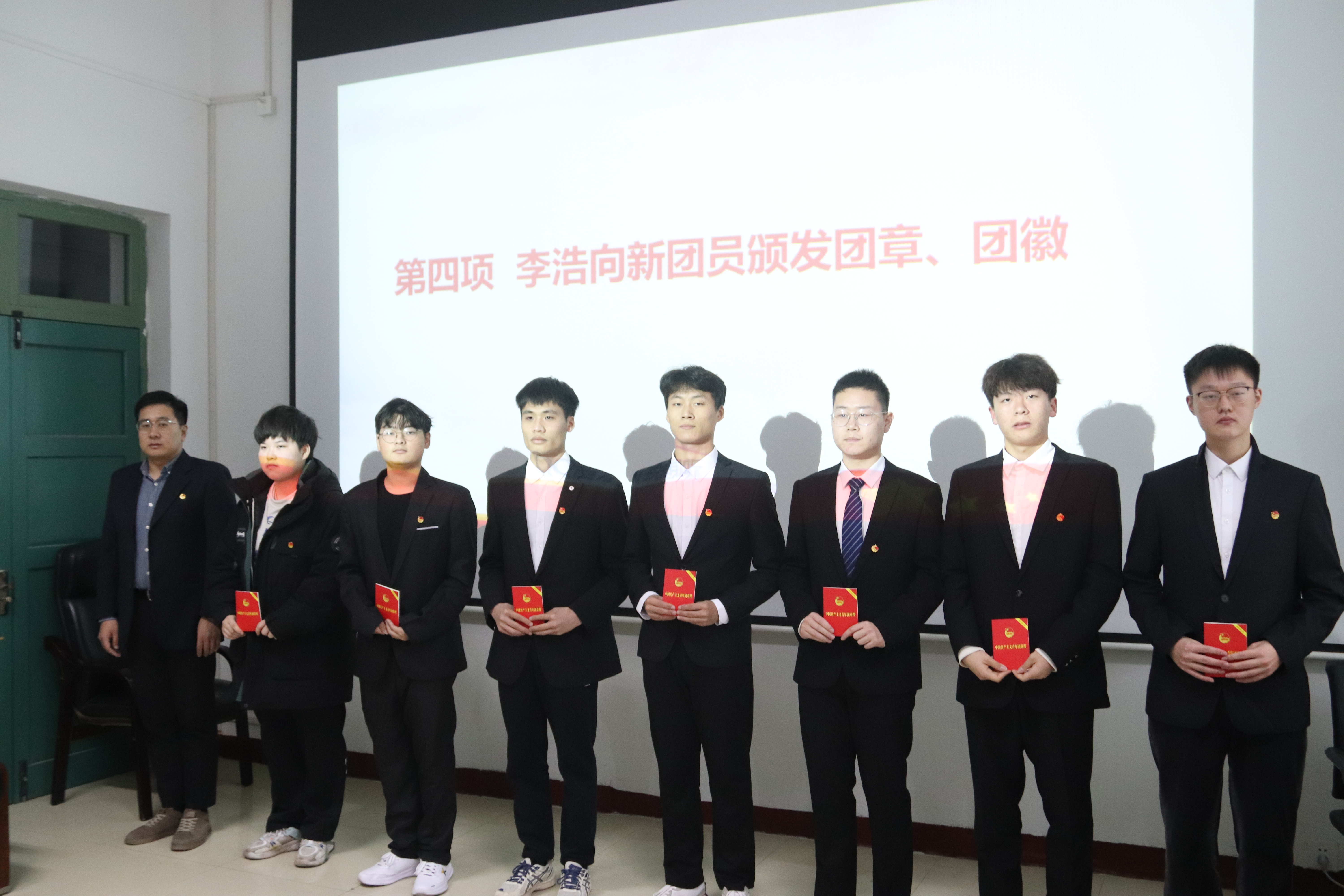 入团仪式上车玉章宣读本期新团员发展名单,李浩致辞,说明发展团员的意义,对新发展团员提出希望和要求,并为新团员代表颁发团员证和团徽。新发展团员进行入团宣誓,表达了主动接受团组织的教育,把握时代机遇,勇担青年使命的坚定信念。