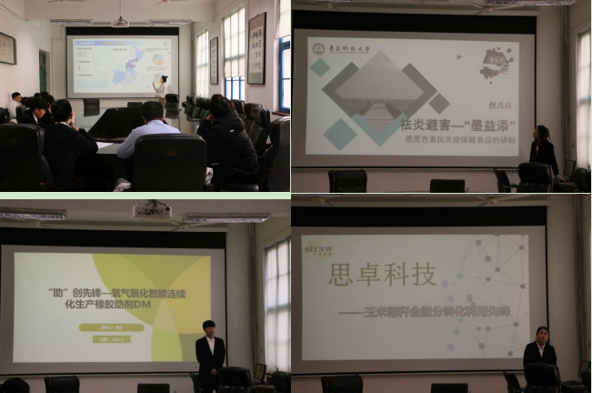 本次比赛共有7支队伍参赛,精彩各异。项目“基于新型SEA核酸等温扩增技术的微流控芯片对于非洲猪瘟病毒的一体化检测”聚焦于社会安全问题,立意高远;项目 “湿敏‘纤’锋—高湿敏性和机械强度的纤维素基”关注新能源领域,符合可持续发展战略;项目“‘墨墨’奉献—改善肠道功能的营养食品”创新性强,具有较高的实用价值;项目“ ‘助’创先锋—氧气氧化智能连续化生产橡胶助剂DM”、“‘菌’影婆娑—逆转微塑料污染的绿色革命”关注环境污染问题,符合国家绿色发展战略。评委们逐一点评各个项目,从项目内容到答辩技巧对每支队伍都提出了针对性指导意见。同时,评委还提出要加大调研力度,对比同类产品,弥补项目缺点,为参赛者指出了更合适的研究方向。