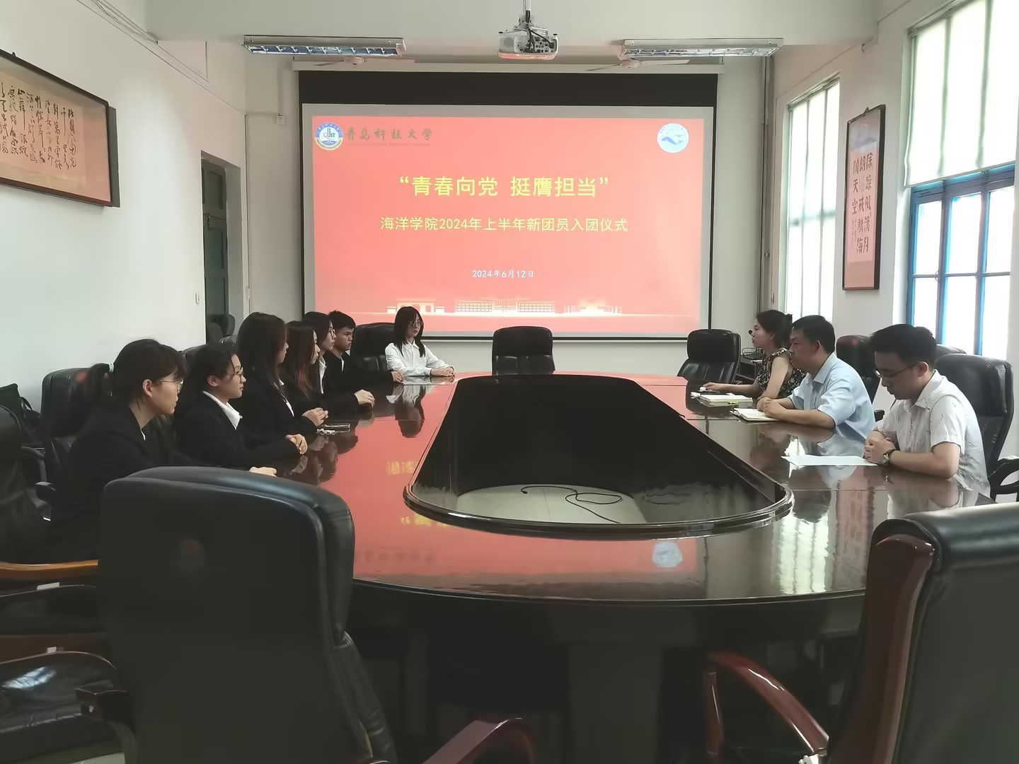 为了充分发挥团组织的引领作用,进一步增强团组织凝聚力,规范发展团员工作,6月12日,我院“青春向党,挺膺担当”2024年上半年新团员入团仪式在学院会议室举行。我院团委书记秦洪庆、团干部车玉章、郭颖以及2024年上半年新发展团员参加本次仪式。