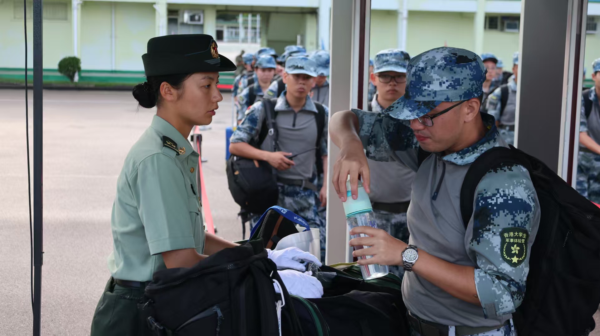 香港的夏天燥热难耐,地表温度能高达40多度,每次训练都是一场硬战。其中最难熬的还是热习服训练,这既是对官兵身体素质的考验,更是对战斗意志的磨炼。烈日炙烤下,热浪滚滚,整个人就像在大蒸笼里一样,大颗的汗珠顺着额头流进眼睛,短时间的训练下汗水也早已湿透了外套。每一分钟的军姿、每一次的齐步、每一下的转法,每一趟的正步,都在日夜训练中逐渐成型。星辰见证我们的坚持,日月与我们相伴,我们用汗水书写忠诚,以热血捍卫青春,只为做到“出场就震撼、亮相即精彩”,向香港市民展示威武文明之师,让他们知道中国军人的样子,让他们安心。