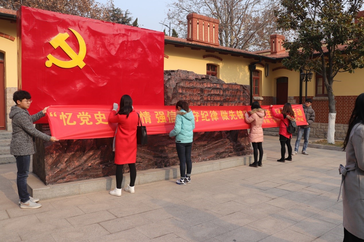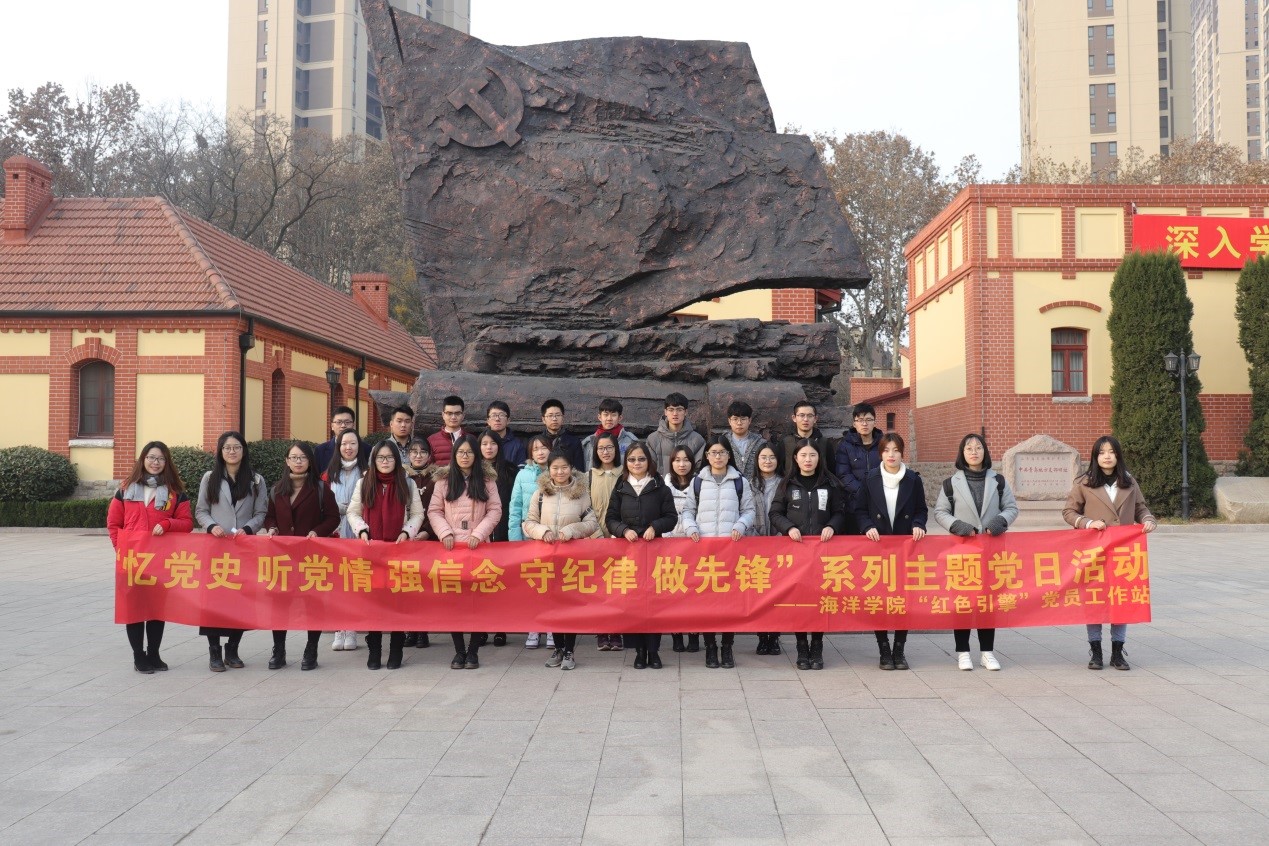 为深刻领会习近平总书记重要讲话精神,以“红船精神”为牵引,通过重温历史,接受革命传统教育,颂扬革命精神,继承革命优良传统和宝贵精神财富。12月2日早上,我院“红色引擎”党员工作站全体成员与化工学院“先锋党苑”研究生第三支部成员,共49人赴中共青岛党史纪念馆开展“忆党史 听党情 强信念 守纪律 做先锋”主题党日活动。