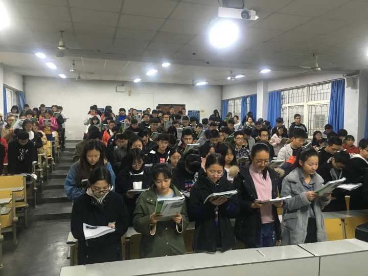 为进一步充分发挥学院学风的引领作用,传承“明德、笃学、弘毅、拓新”的科大校训精神,弘扬我院“勤奋、求实、进取”的优良学风,贯彻落实“扬学风 促自律 正品行”学风建设活动,我院“红色引擎”党员工作站举办“享一个月晨读”活动,从11月起,组织全体新生在第一教学楼103室定期开展“3C(Courage·Confidence·Crazy)晨读团”活动。