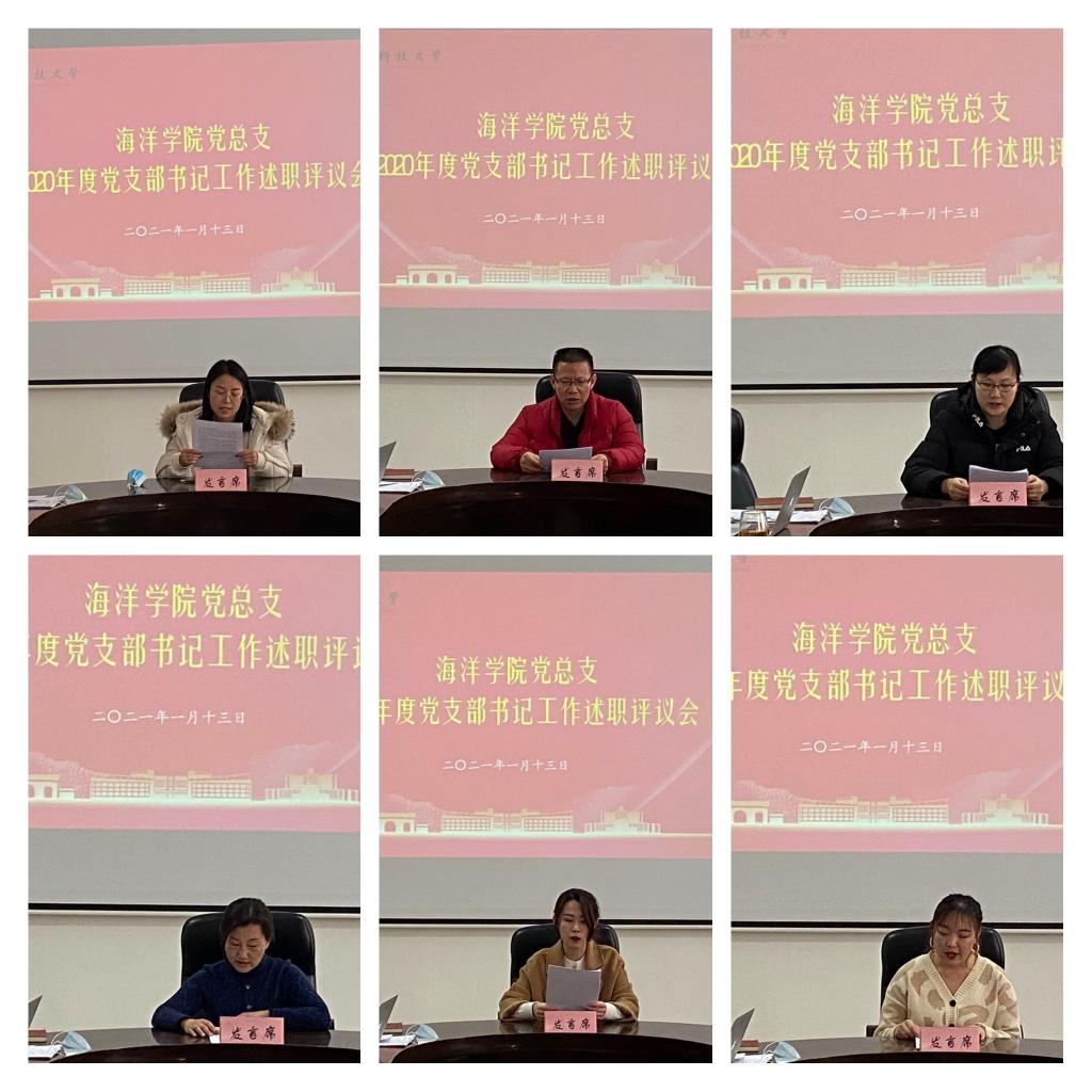 会上,我院6名党支部书记先后从支部生活工作开展情况、支部工作成果、理论学习、存在不足、未来规划等方面进行工作述职,详细汇报了2020年度的工作情况、工作成果和“一支部一特色”开展情况,对工作中出现的问题和不足进行自省并提出相应的改进措施。