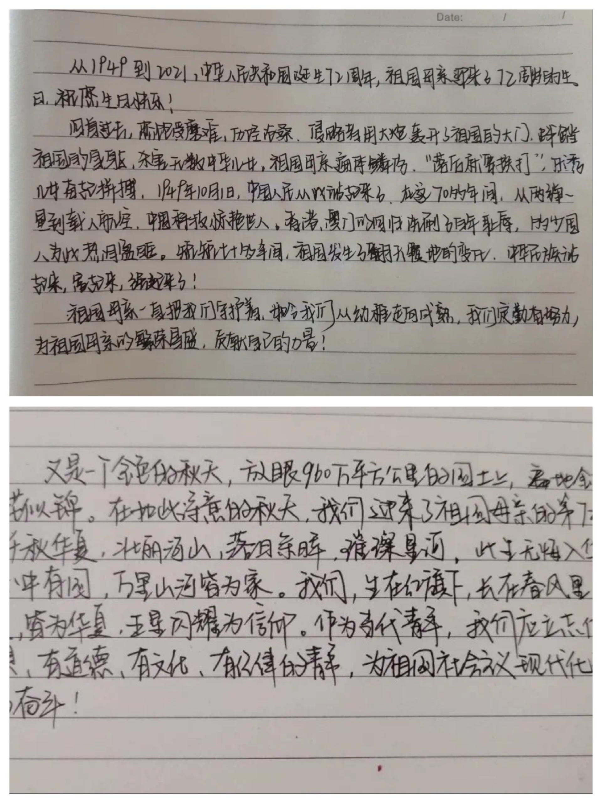 “我和我的祖国一刻也不能分割,无论走到哪里,都流出一首赞歌”,歌曲《我和我的祖国》中抒情和激情相结合的音调,表达了热爱祖国的浓厚感情。同学们合唱《我和我的祖国》,深刻爱国情感,为祖国庆生。