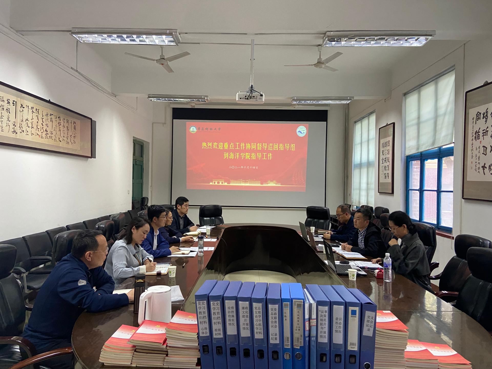 10月14日下午,学校重点工作协同督导巡回指导组组长王江忠一行到我院督查指导。我院党政领导班子、总支委员出席会议。