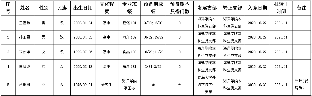 经我院本科生党支部研究,拟将王嘉乐等同志转为中共正式党员,现将其有关情况予以公示。