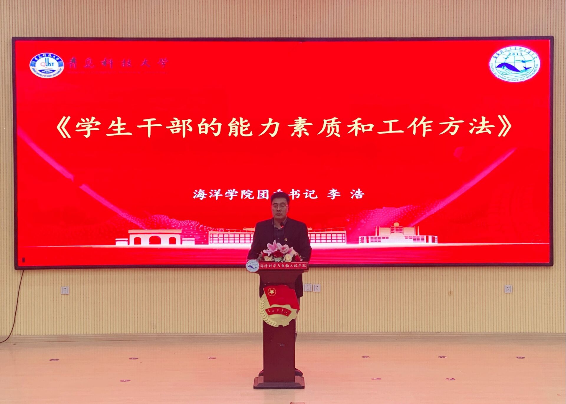 会上,李浩以《学生干部的能力素质和工作方法》为题为青马学员做专题报告。他围绕学生干部的角色定位、学生干部的作用、学生干部的素质要求、学生干部的五个意识和五个能力、学生干部工作的流程、学生干部需要学会处理三种关系、学生干部工作的基本方法等七个方面,联系实际,结合工作经验进行讲解,要求学生干部要做学生友,不做学生观。并寄语全体青马学员能够清清楚楚看昨天,扎扎实实抓今天,高高兴兴看明天,向昨天要经验,向今天要成果,向明天要动力,为实现中华民族伟大复兴贡献青春力量。