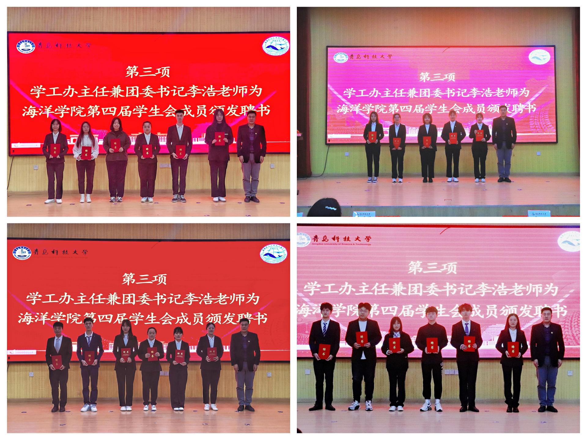 李浩宣读第四届学生会名单并颁发聘书。吕珊珊宣读学生会2020-2021年度“优秀常驻志愿者”名单并颁发证书。