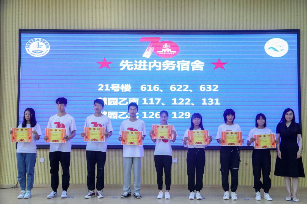 李昉为军训优秀学员颁发奖状;王新萍为优秀内务宿舍颁发奖状;臧传永宣读表彰决定。